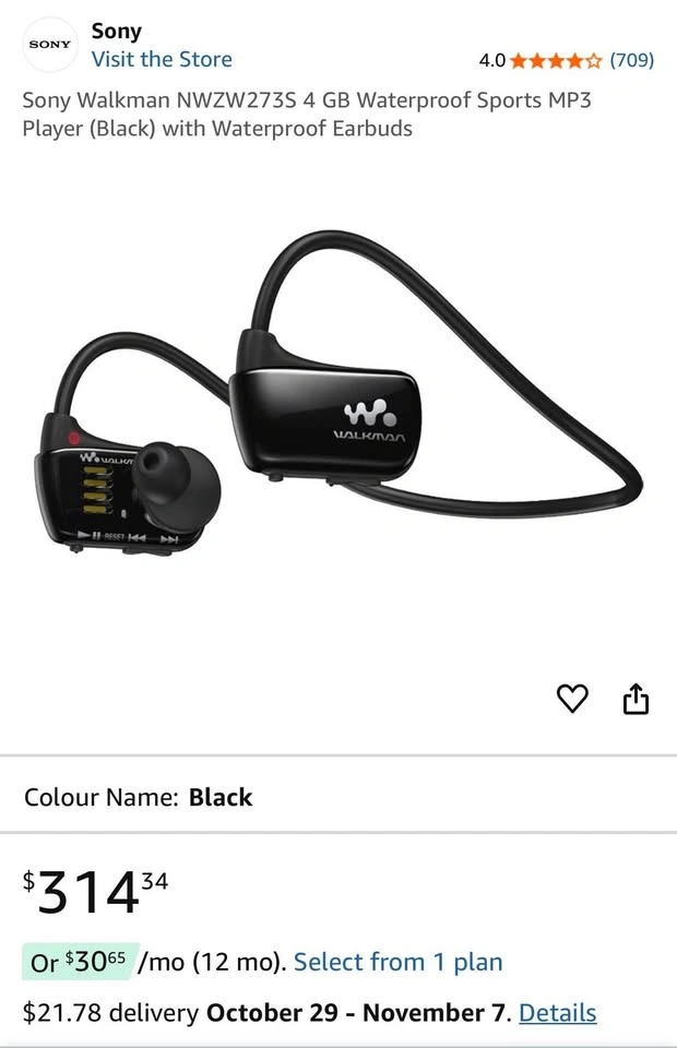 Sony Walkman NWZW273S waterproof sports MP3 player, 4 GB internal memory (note: this is a MP3 music player, not Bluetooth headphones) great for swimming and running gently used. Local pickup near Steeles and Dufferin, cash only.