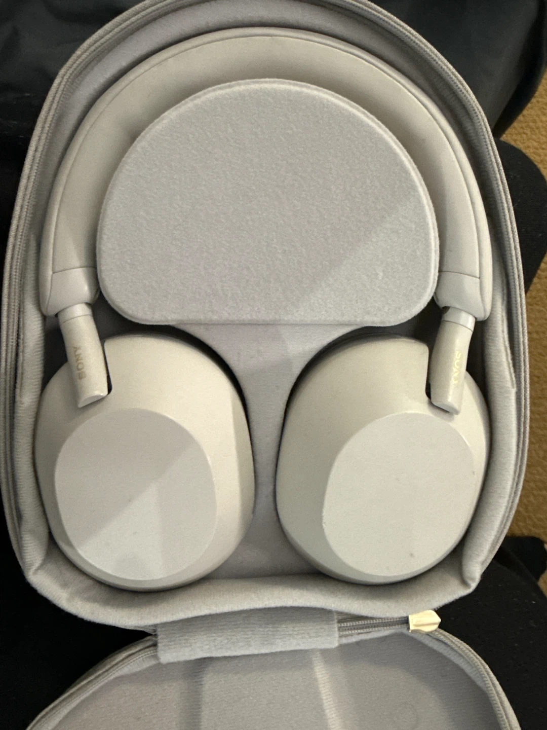 Selling a pair of Sony WH-1000XM5 wireless noise-cancelling headphones in grey! Great condition, come with their case.