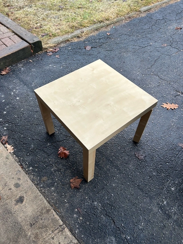Used IKEA Lack table, perfect as a side table or for small spaces. It's sturdy and simple, great for any room. There are some signs of wear, but overall it's in good condition. Dimensions: 55x55 cm, Height: 45 cm. If the ad is up, it's available!