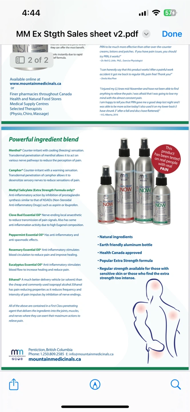 Here are a few subject line options you could use for your Carrot app post about Mountain Medicinal Spray: 1. Natural Pain Relief Made in BC 2. Sore Muscles? Try Mountain Medicinal Spray 3. Fast-Acting Relief for Aches & Pains 4. Proudly Made in BC – Mountain Medicinal Spray 5. Local Pain Relief You Can Trust 30 ML ROLL ON Bottle - 19 dollar 120 ML PRN SPRAY - 28 Dollars No GST or shipping I can deliver in Surrey/ Delta locally.