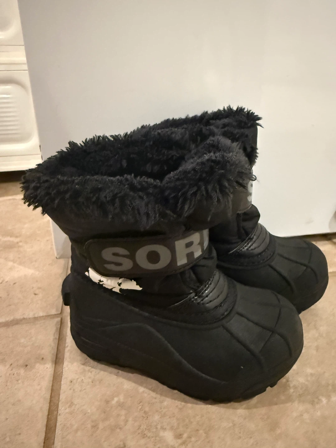 Keep your little one's feet warm with these Sorel black winter boots! They have some wear on the strap, but still have lots of life left for snowy adventures Size 9 toddler