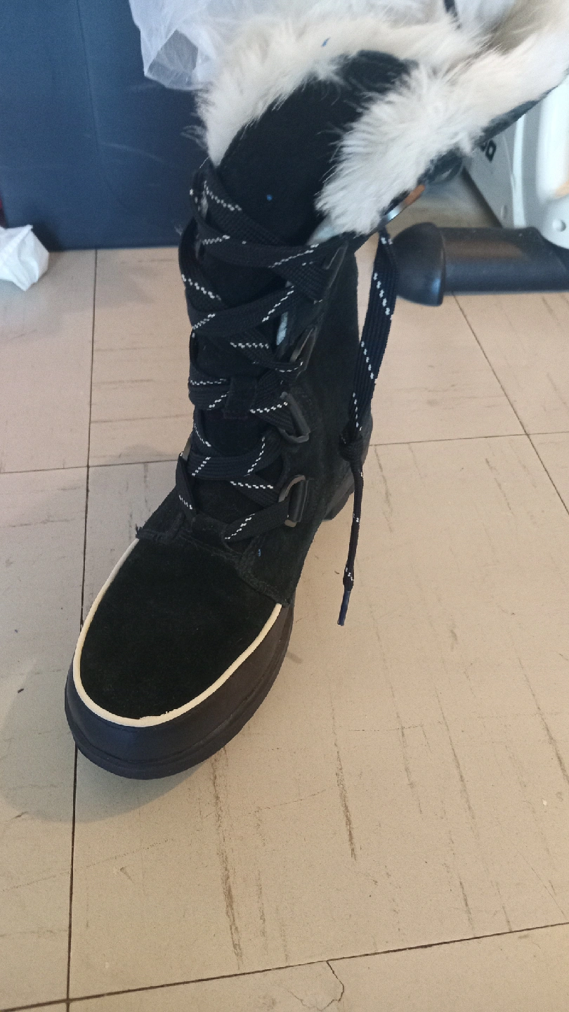 Selling a pair of Sorel winter boots in black. They feature a lace-up design and a fur trim at the top. Great for keeping your feet warm and dry during the winter months! Never worn Water proof