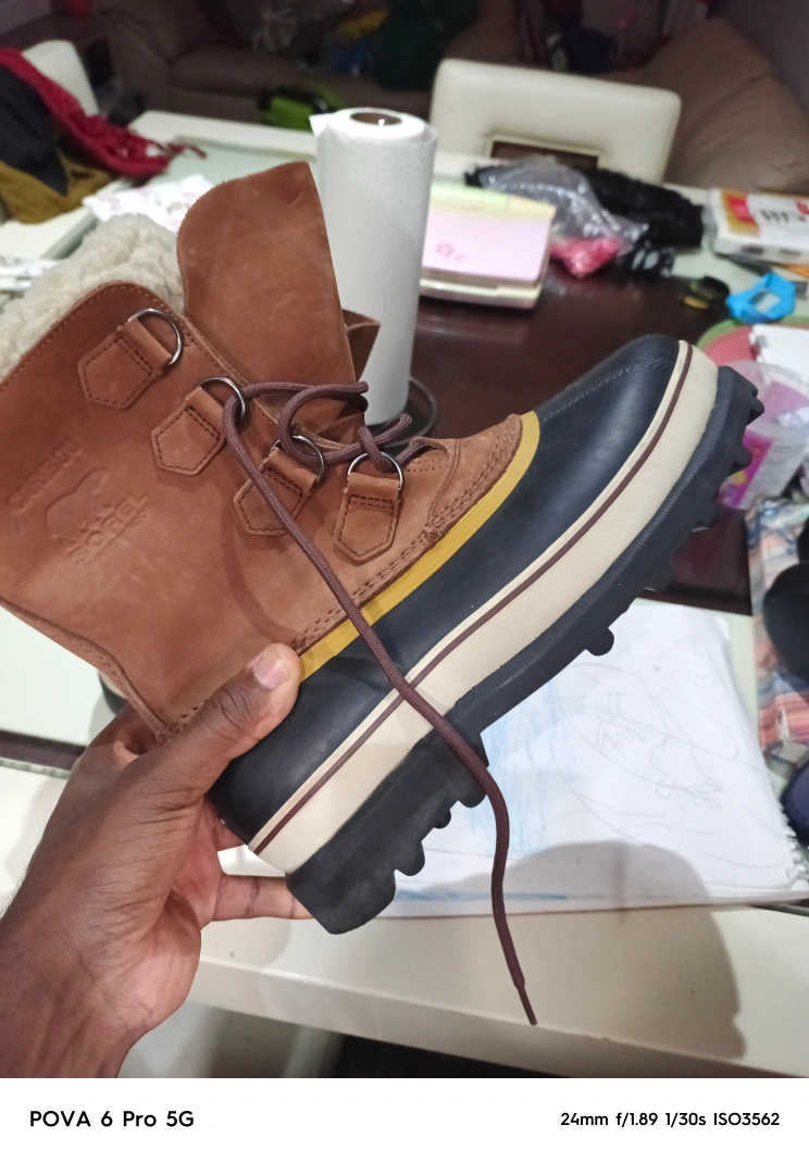 Keep your feet warm and stylish with these Sorel winter boots! They feature a classic design with a brown leather upper and a durable rubber sole. Perfect for braving the Canadian winters!