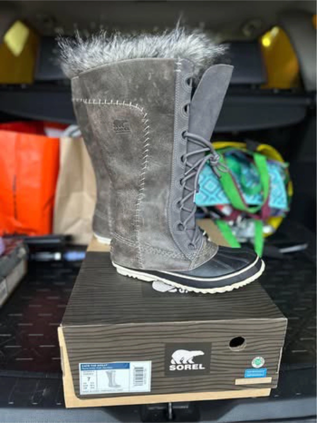 Selling a pair of Sorel Cate The Great women's boots in size 7. They are in great condition and come with the original box. These boots are waterproof and perfect for the Canadian winter!