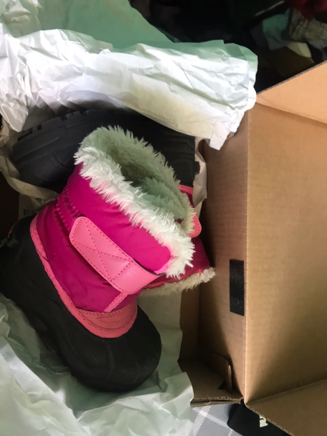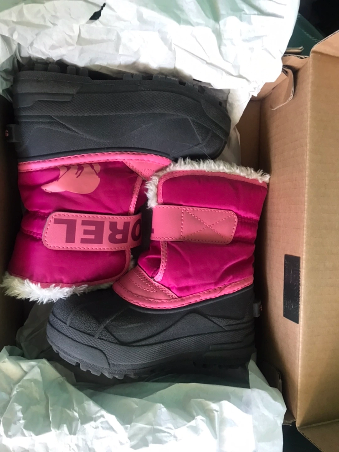 Selling a pair of Sorel winter boots in pink and black, size 9c. They are in great condition and come with the original box. Perfect for keeping little feet warm and dry this winter!