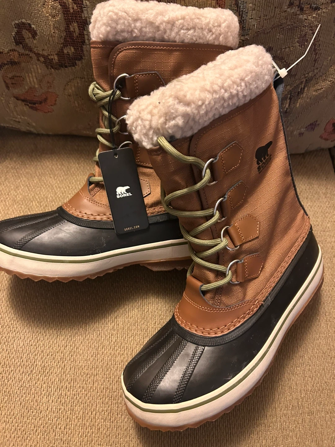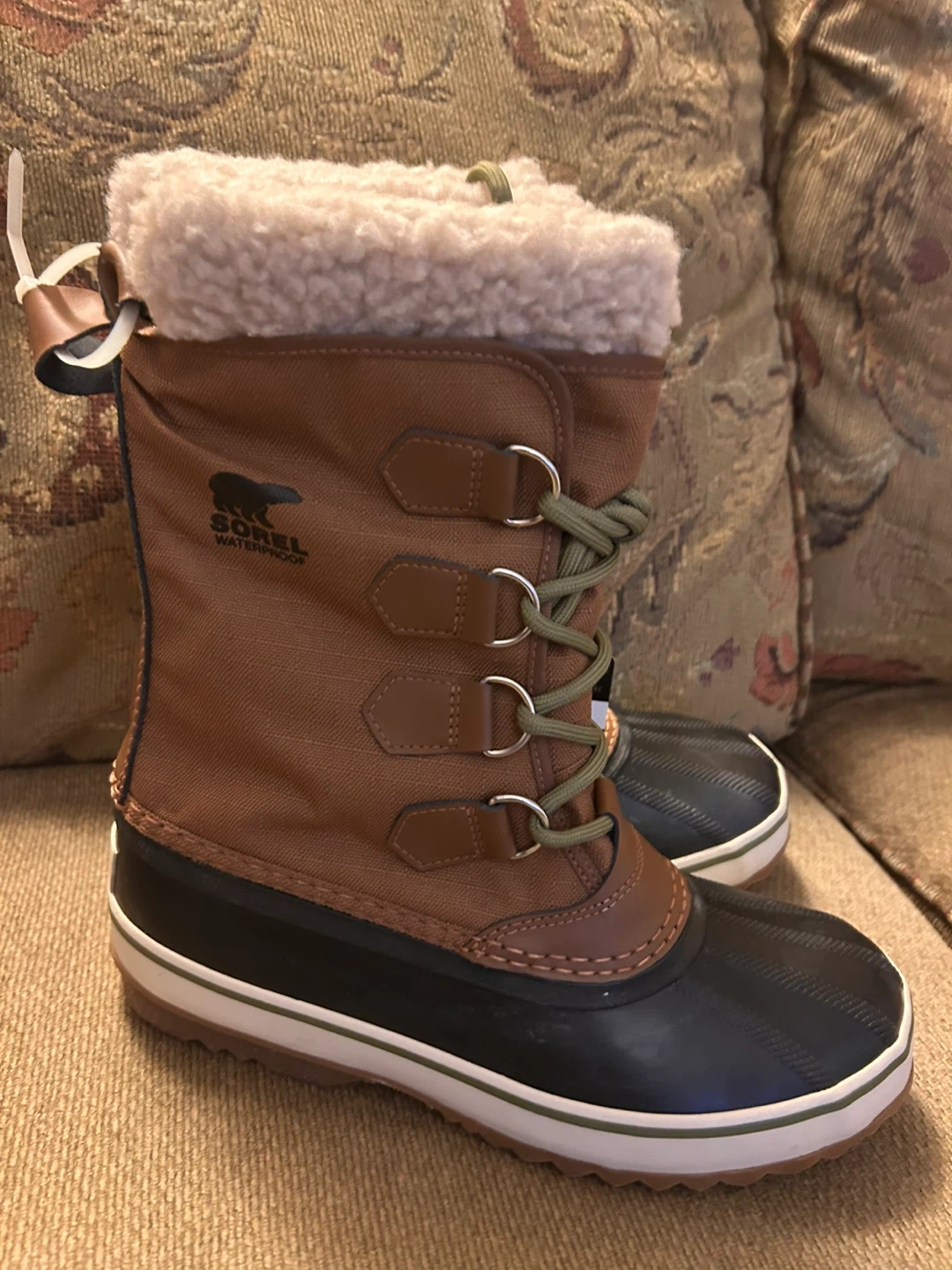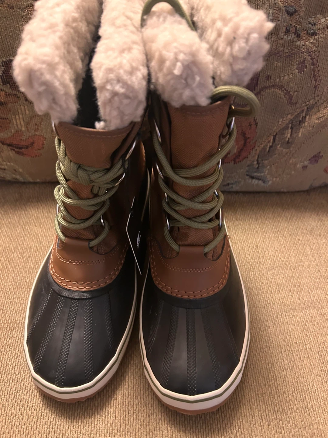 33These Sorel winter boots are perfect for keeping your feet warm and dry! They are waterproof and in great condition. The boots feature a stylish design with a cozy faux fur trim. Ready for the Canadian winter!