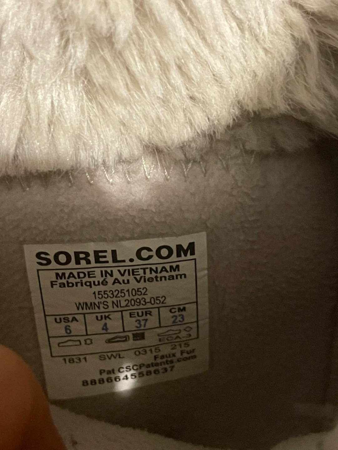 85Selling a pair of Sorel women's winter boots, model NL2093-052. They are a size 6 (US). These boots are perfect for keeping your feet warm and dry during the winter months!
