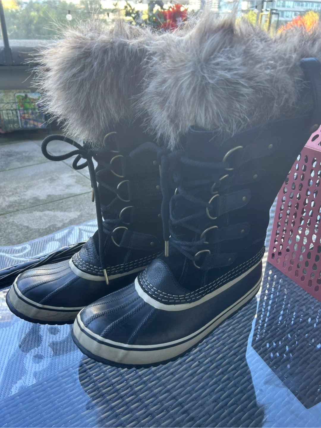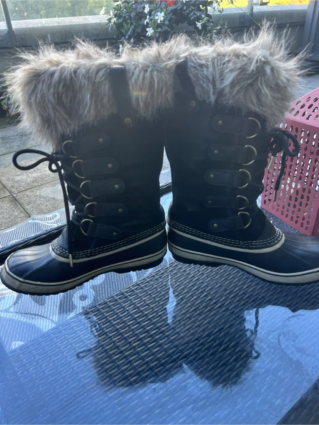 15Selling a pair of beautiful Sorel Women's winter boots in size 10. Worn only 3x and are too big for me. They are waterproof and have a faux fur trim.