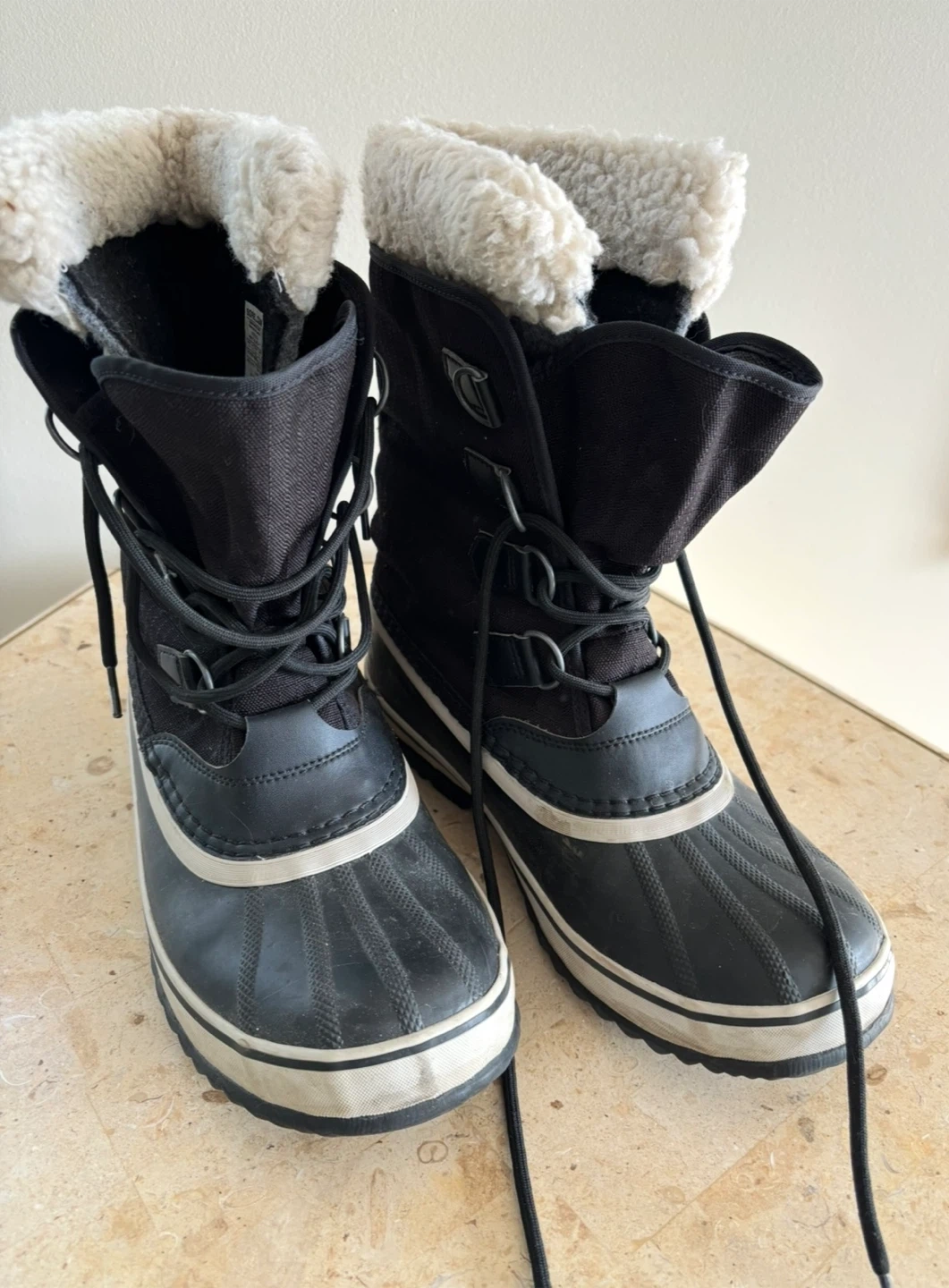 Selling a pair of Sorel women's winter boots in size 10. These boots are perfect for keeping your feet warm and dry during the cold Canadian winters! They are waterproof and have a faux fur lining for extra comfort.
