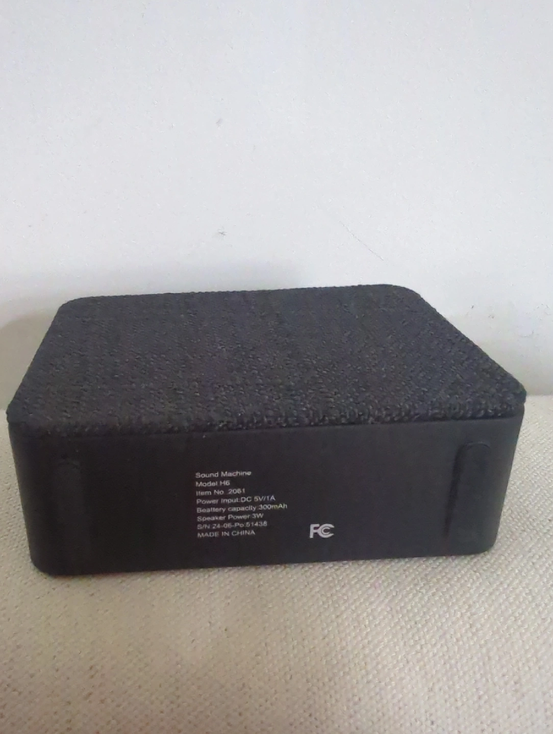 Sound Machine Model H6. It features different sounds to help you sleep better, such as rain, wind, and bird sounds. It is in great condition and ready to help you relax