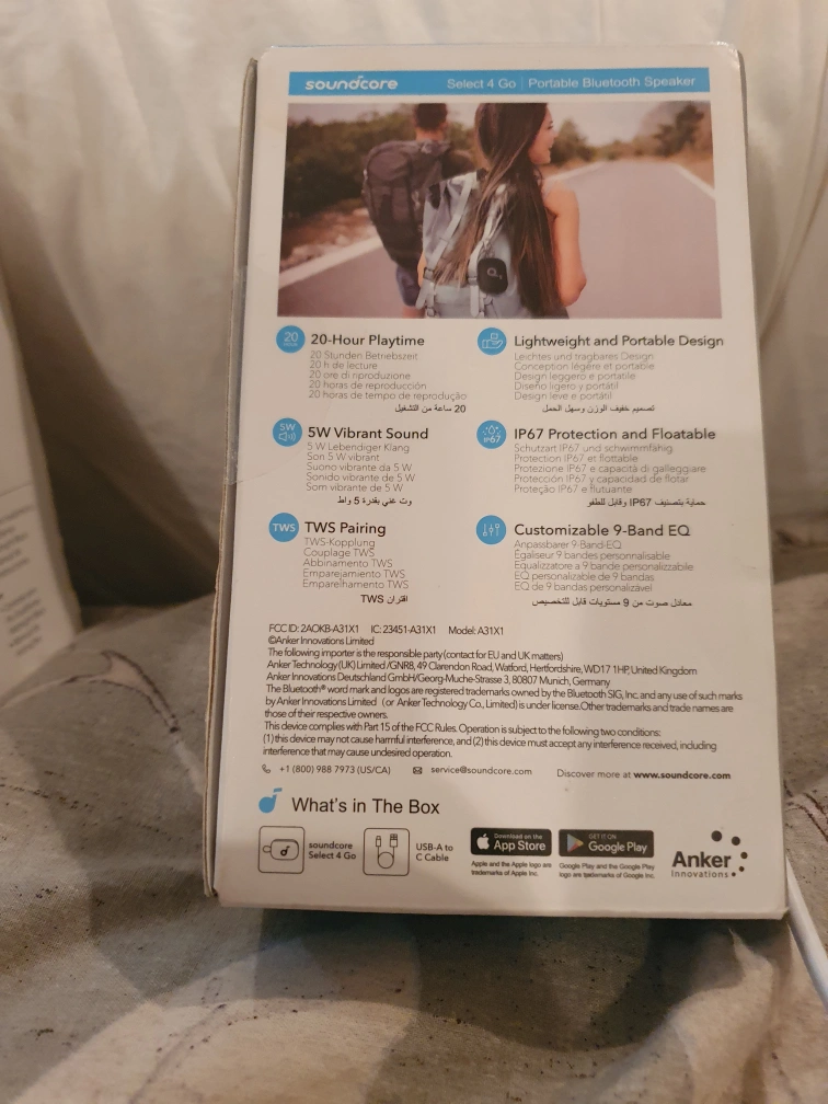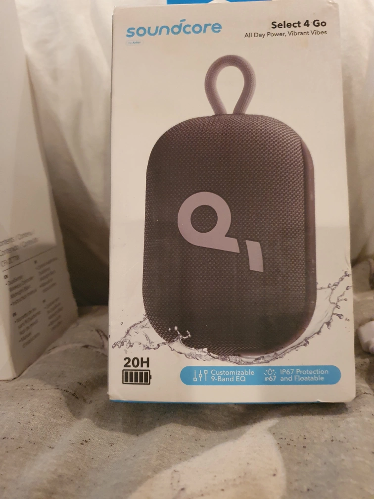 Selling a brand new Soundcore Select 4 Go portable Bluetooth speaker! It's still in its original packaging. This speaker offers vibrant sound and is designed for all-day power. Key features include: - 20-hour playtime - Lightweight and portable design - IP67 protection, making it floatable and resistant to dust and water - Customizable 9-band EQ What's in the box: Soundcore Select 4 Go and a USB-C cable
