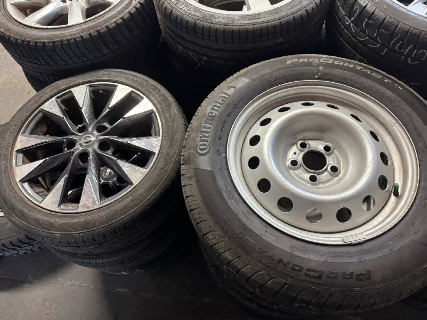 Winter and all season sets for sale. These are aftermarket and OEM wheels. They're in good condition with some minor scuffs from normal use. These rims are suitable for various vehicle makes and models.
