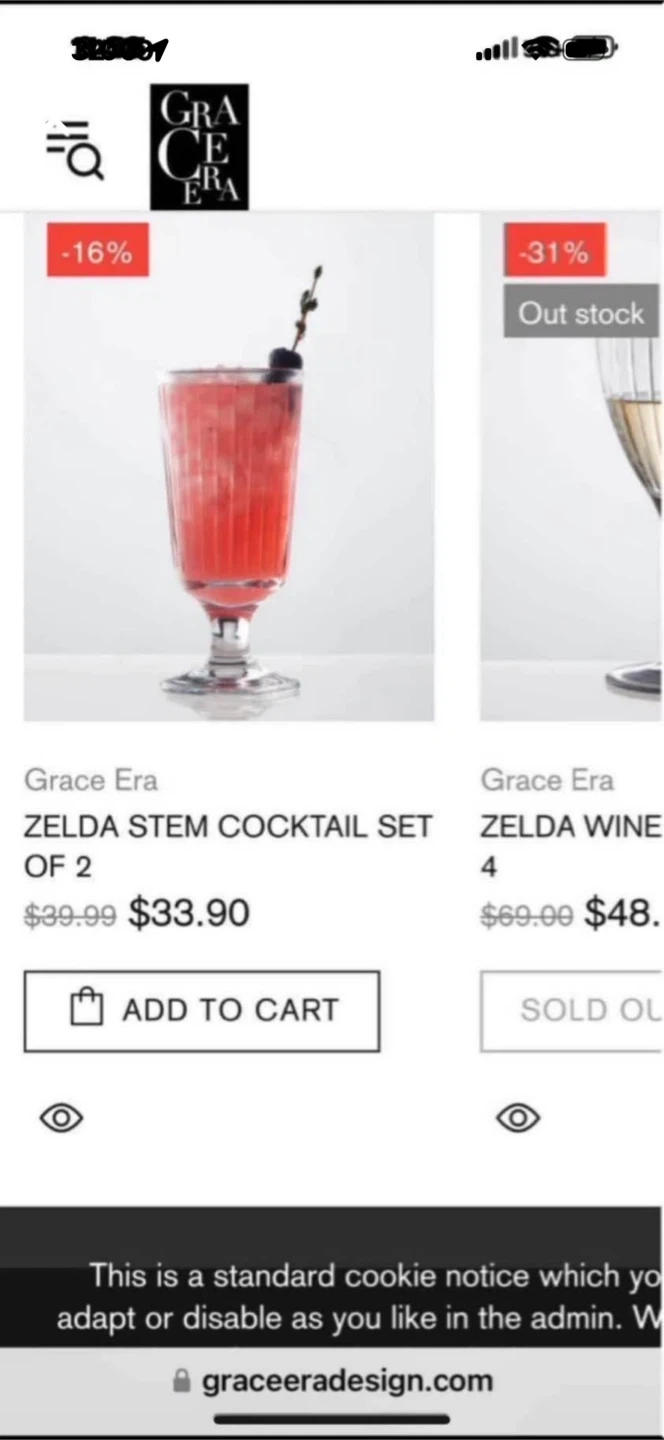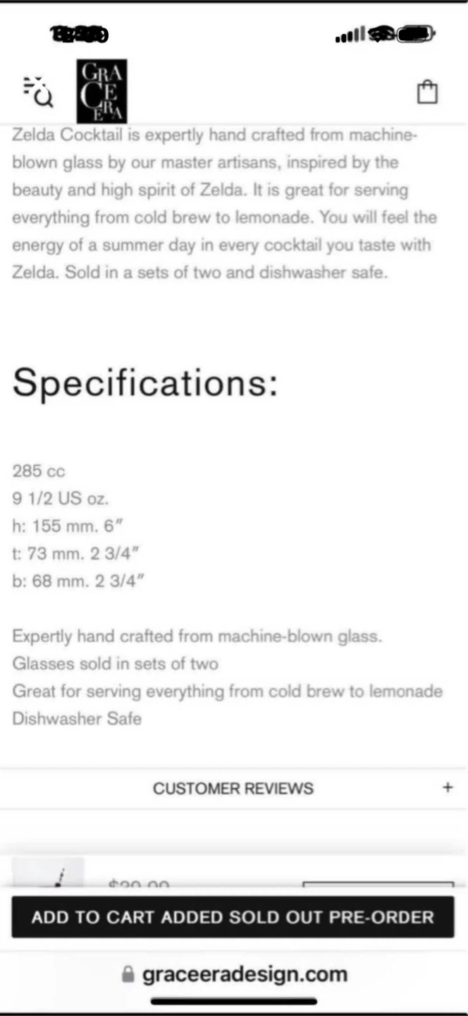 Grace Era Zelda stem cocktail set in box.