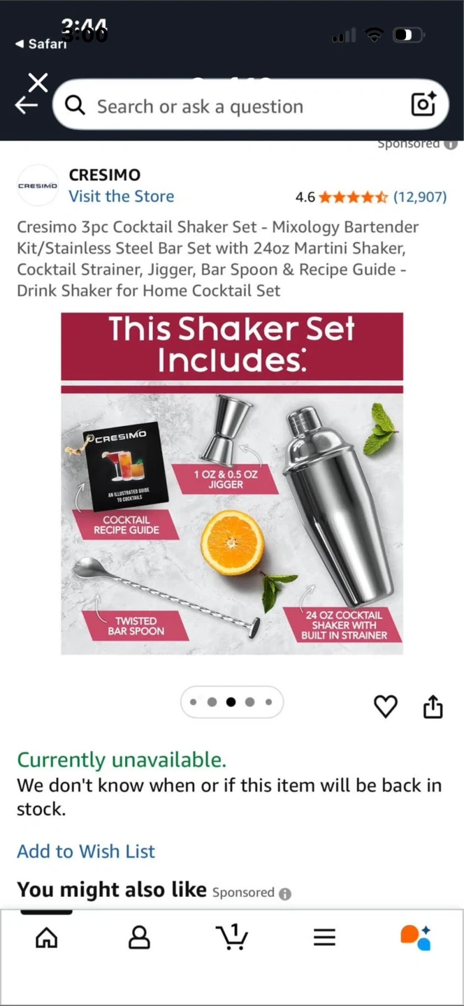 3 pc cocktail shaker set $7