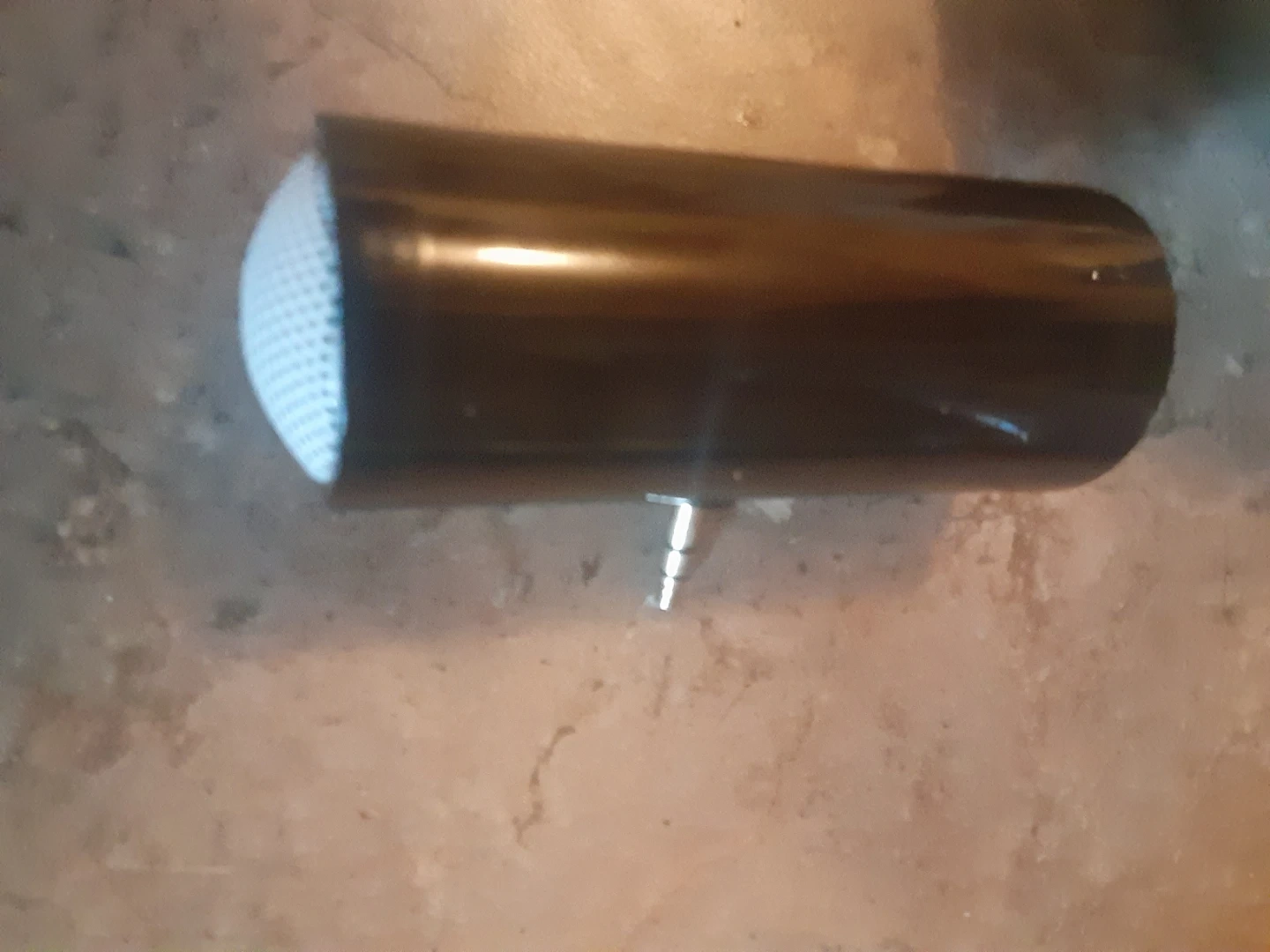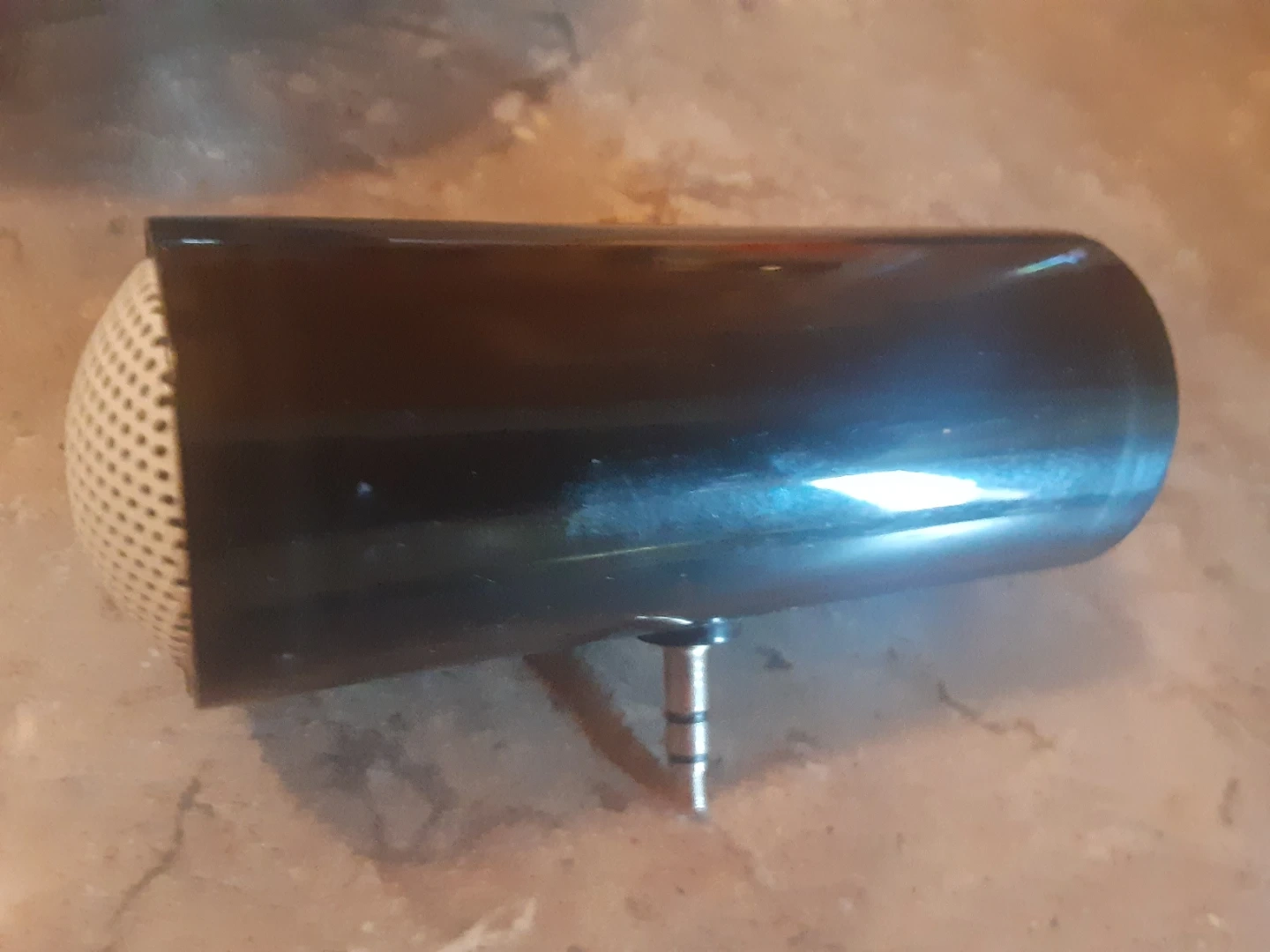 This black cylinder speaker plugs into any 3.5mm audio jack. It's a compact portable speaker. Great for taking music on the go!