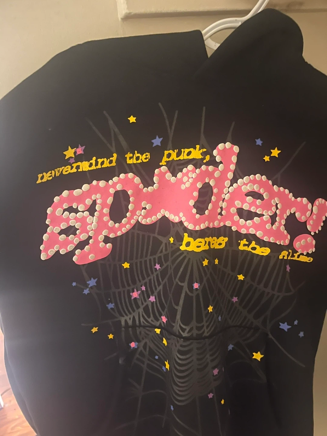 Selling a black Sp5der hoodie haven’t worn once i just tried it on and sprayed some cologne but it was to small it’s it perfect condition