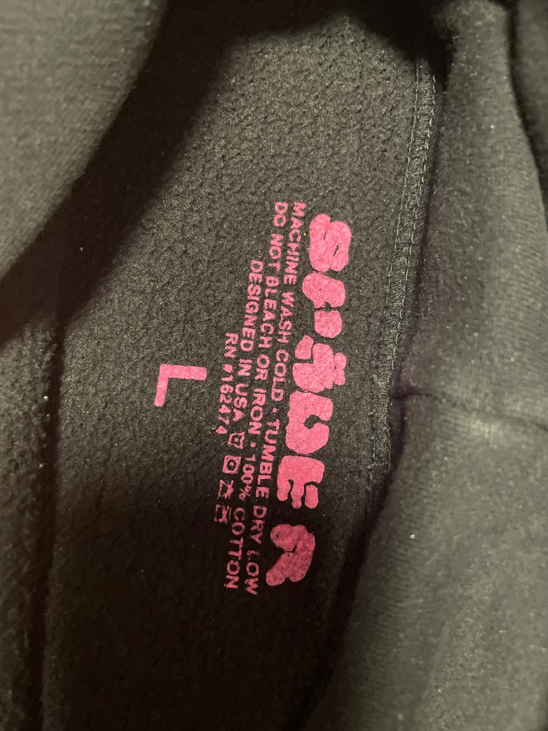 Selling a Sp5der black hoodie in size large. It's in great condition and made of 100% cotton. Features a cool spiderweb design and colourful stars on the sleeves! It’s a M but can also fit a L