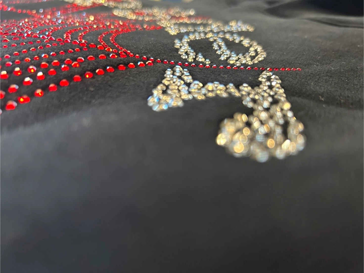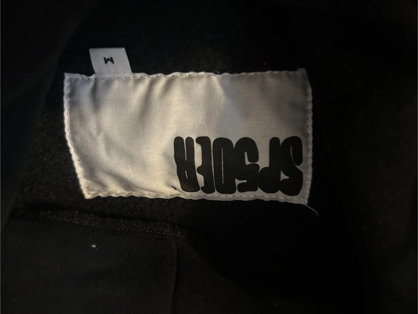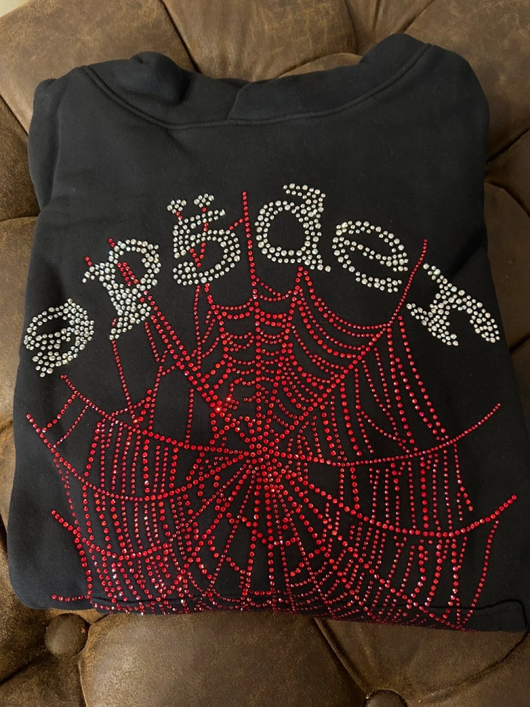 10Selling a SP5DER hoodie in size medium. It features a unique design with rhinestones. Great for adding some sparkle to your wardrobe!(can fit large)