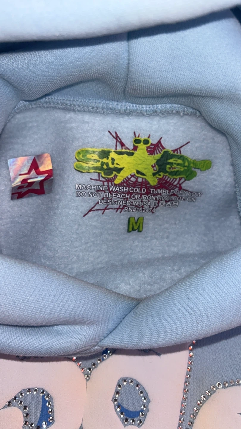 10Selling a Sp5der hoodie in size medium. The hoodie features a web design. It's in great condition and ready for a new home! amazing puff print with shining rhinestones and ready to he sold.!