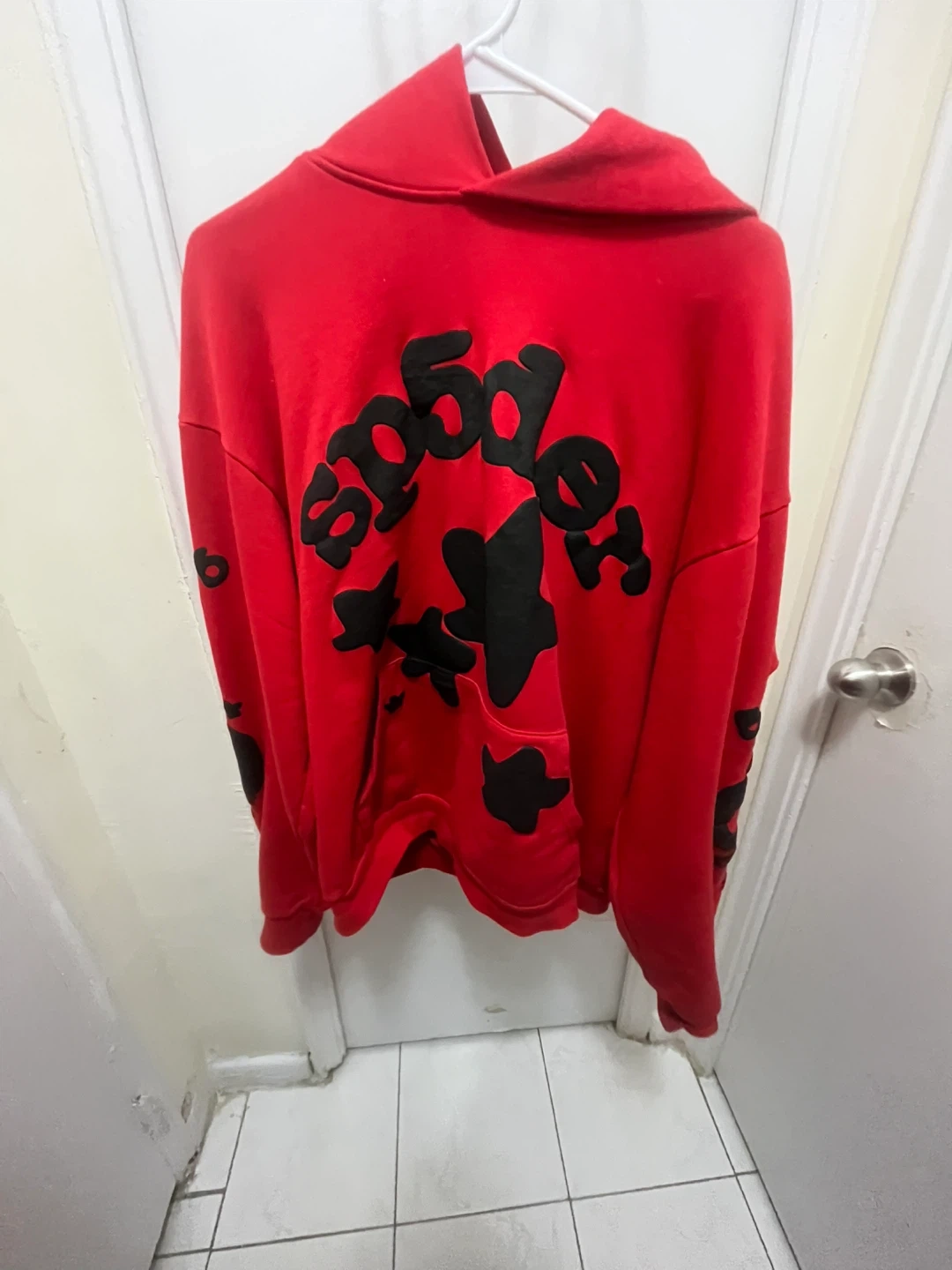 44Selling a Sp5der hoodie in red, size extra large (XL). It's in great condition and ready for a new home!