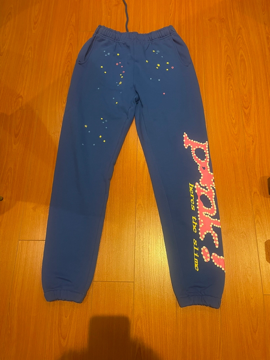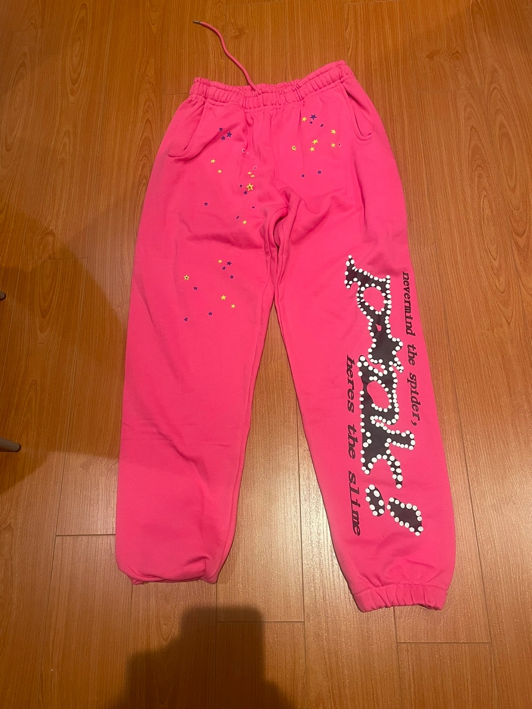 Selling a pair of Sp5der sweatpants. They are brand new, 1:1 in pink and blue and puffy print too 75$ each