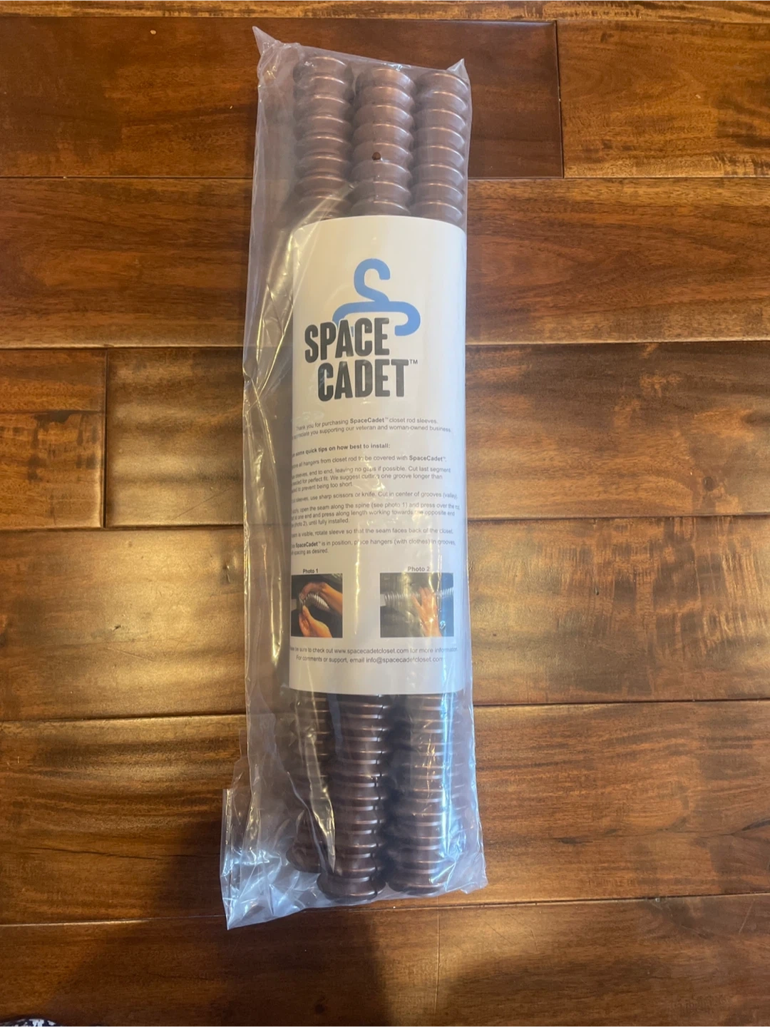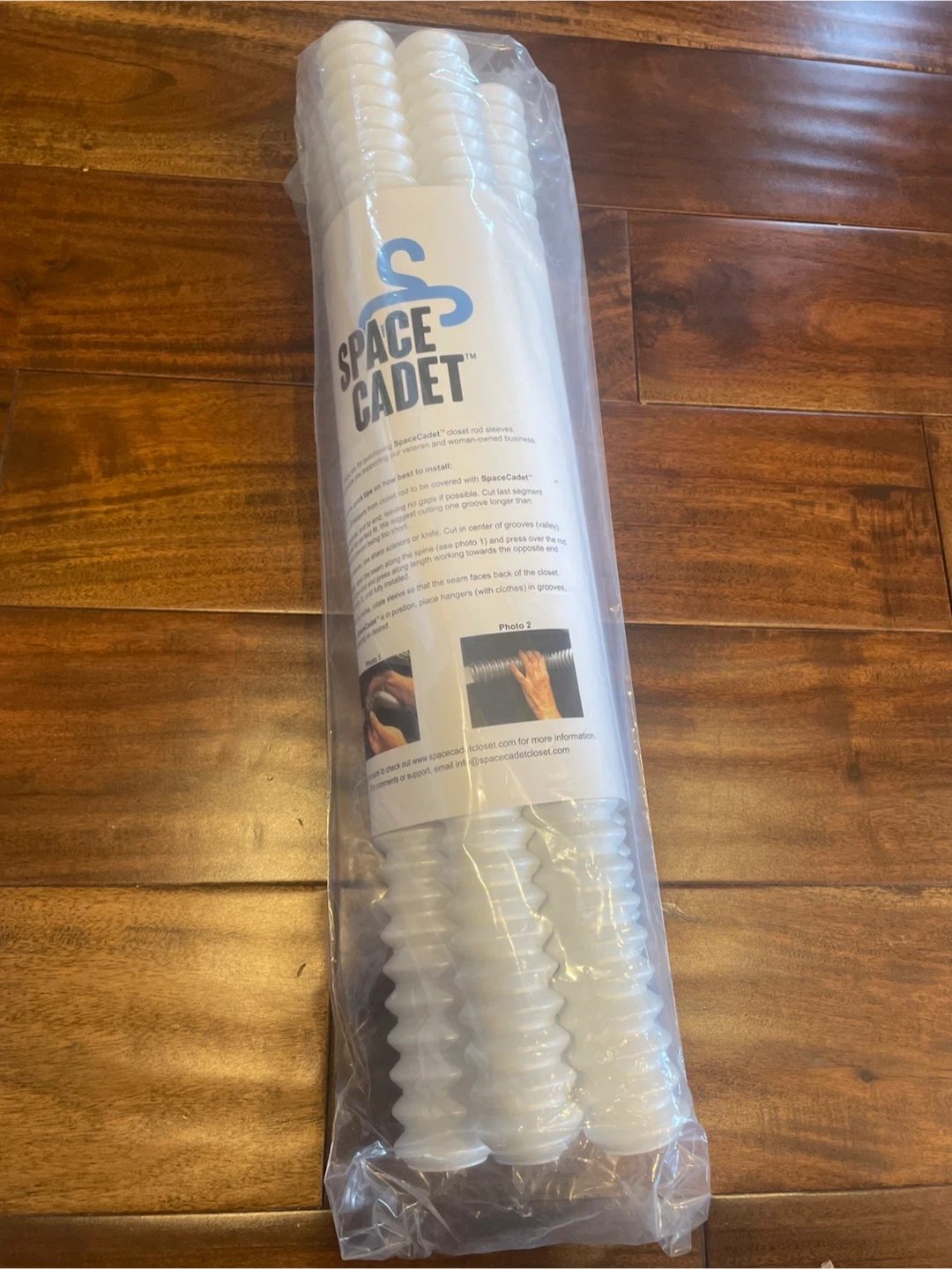 Keep your closet organized with these Space Cadet closet rod cover sleeves! They are designed to create uniform spacing, so your clothes hang neatly and don't bunch together. Universal fit for all closet rod hangers in wardrobe 20$ each
