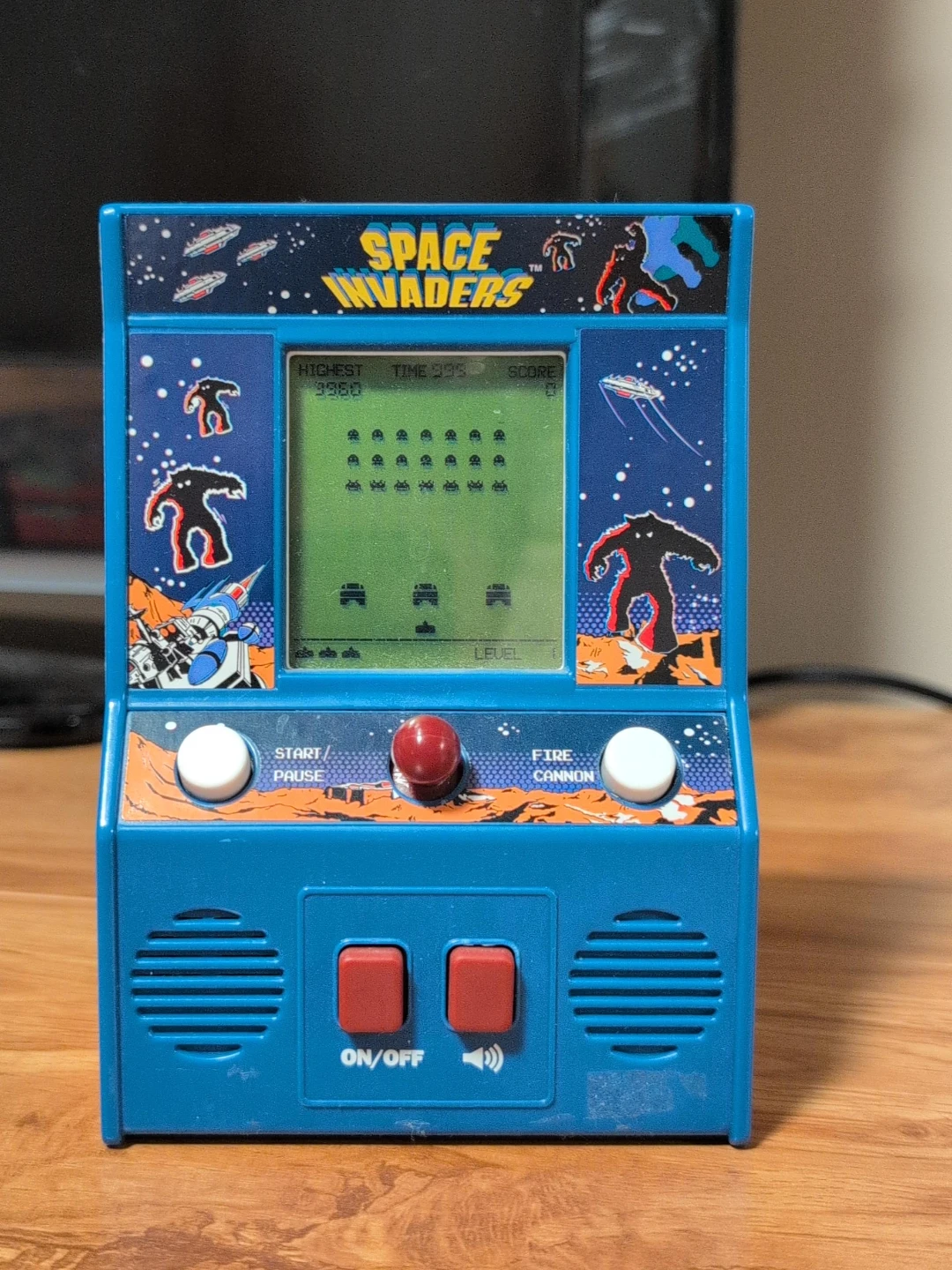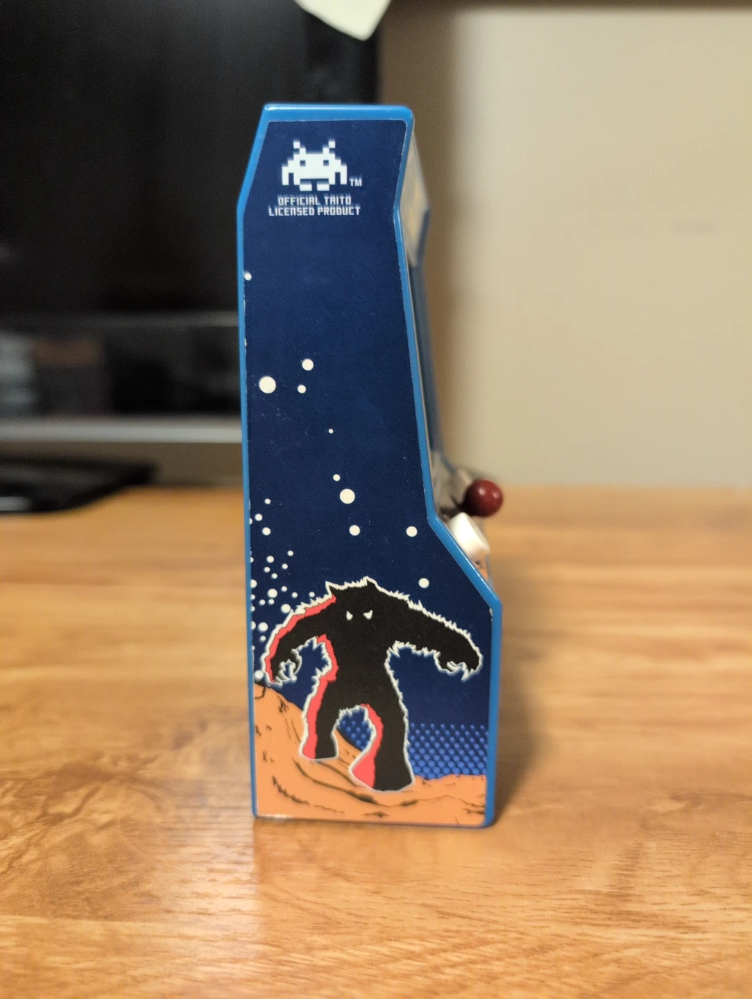 10Selling a Space Invaders mini arcade game! It's in soils condition and ready for some retro fun. This is an Official Taito licensed product, so you know it's the real deal! Perfect for a desk or shelf.