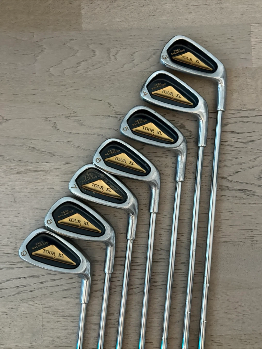 10Selling a set of Tour XL face balanced golf irons. The set includes irons 3 through 9. Great for improving your game!