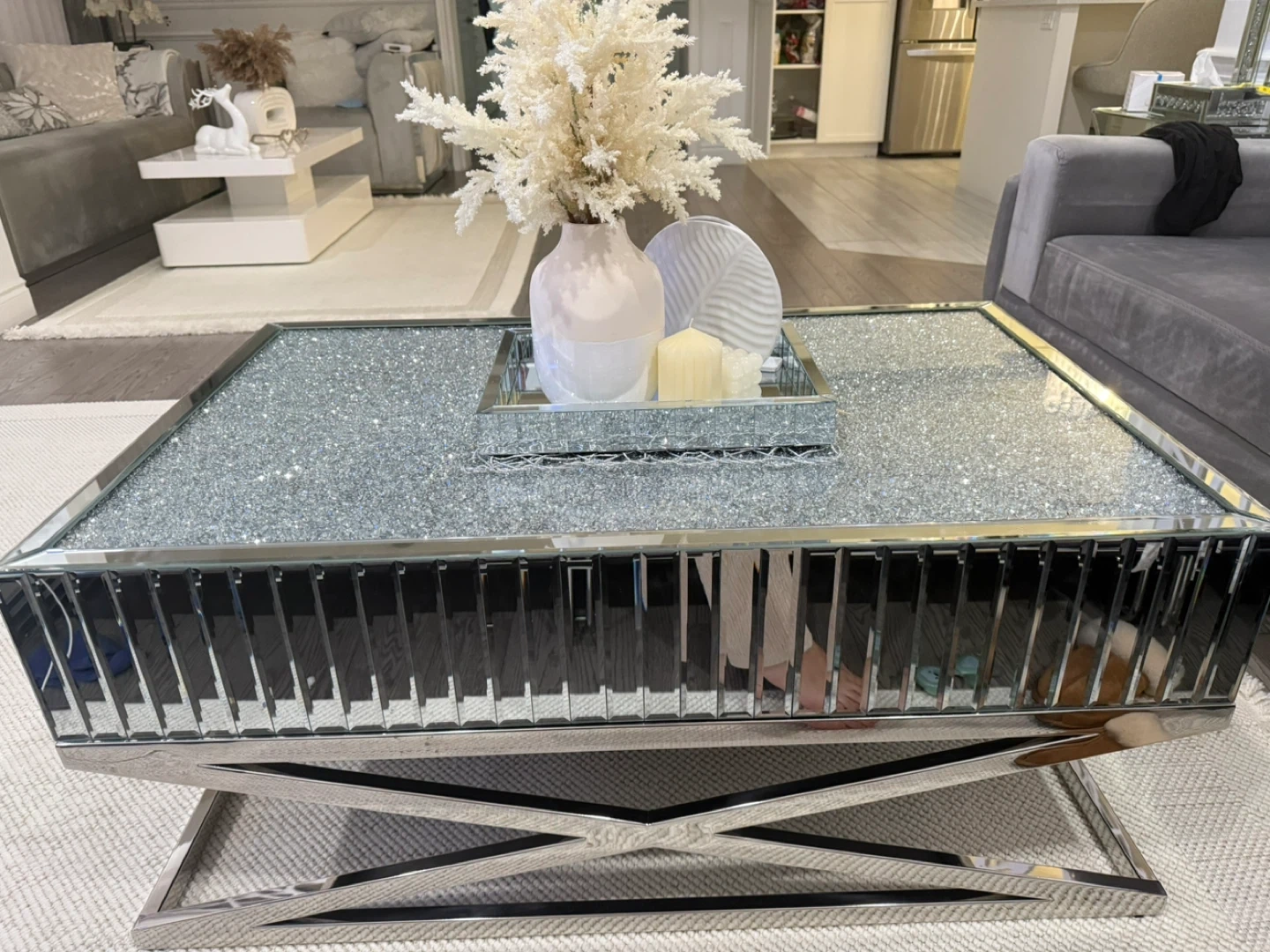 Selling a lovely coffee table with a sparkly, mirrored finish! It's in great condition and would add a touch of glamour to any living room