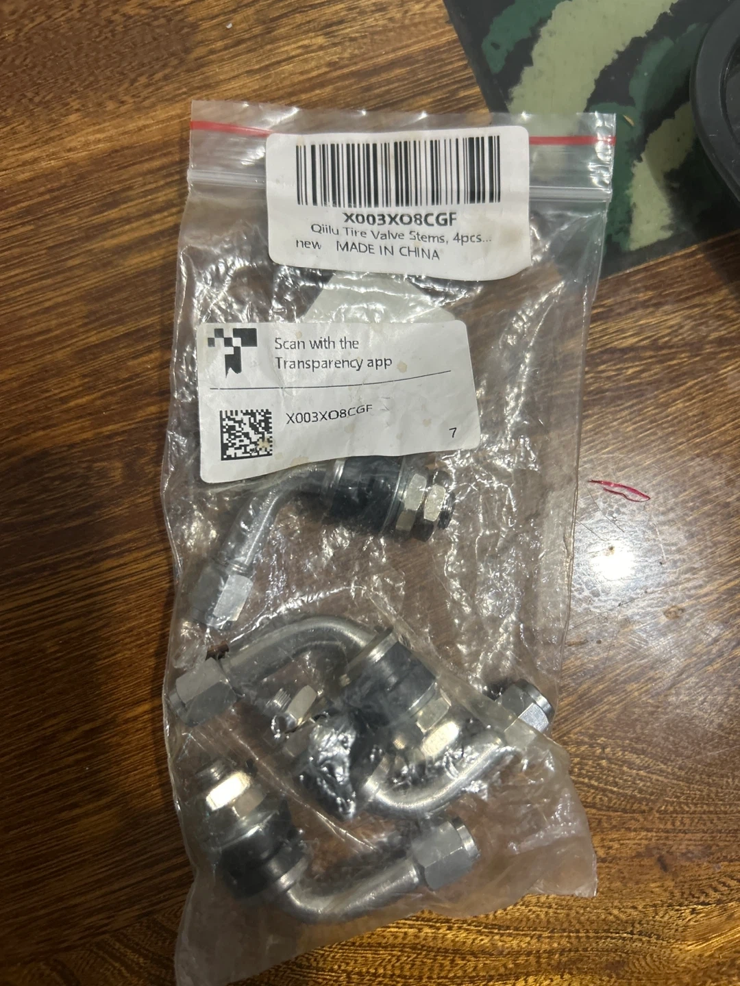 These are Qiilu tire valve stems. They're made of metal and come in a pack of 4. These stems are useful for replacing old or damaged tire valves on vehicles. They're great for ensuring your tires maintain proper air pressure!