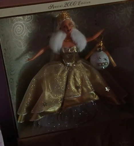 15Selling a Special 2000 Edition Barbie doll in its original box! It's a beautiful doll with a golden dress and white fur stole, perfect for collectors or Barbie enthusiasts