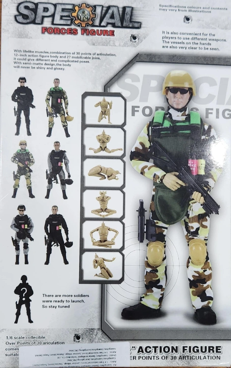 10Selling a Special Forces action figure, part of the Military Series! It features a 12-inch action figure with over 30 points of articulation for various poses. Comes with a semi-matte design, so it's never too shiny or glossy! Perfect for collectors or anyone interested in military-themed figures