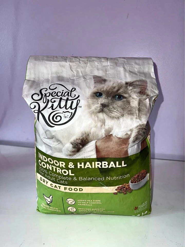 Indoor & Hairball Control Cat Food A little more than half of the bag still left My cat is a picky eater and didn’t continue eating it