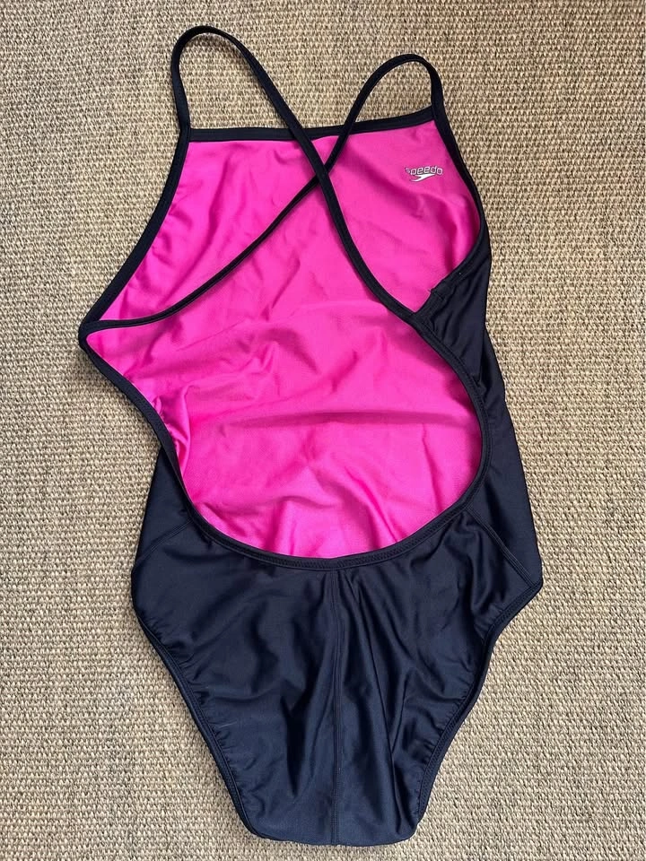 Speedo Women’s training swimsuit, size 34. Reversible - hot pink or black. Lycra fabric. Excellent, like new condition. Worn just a couple of times. Pick up at Mont-Royal metro station. Cash only
