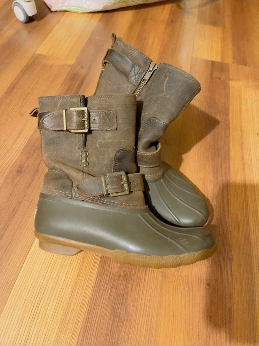 76Sperry Waterproof Rubber Boot - Women's Size 6M Selling a pair of Sperry waterproof rubber boots in women's size 6M. They feature a stylish design with leather and buckle accents. Perfect for rainy days! Pick up in new Westminster close to Douglas collage Firm price