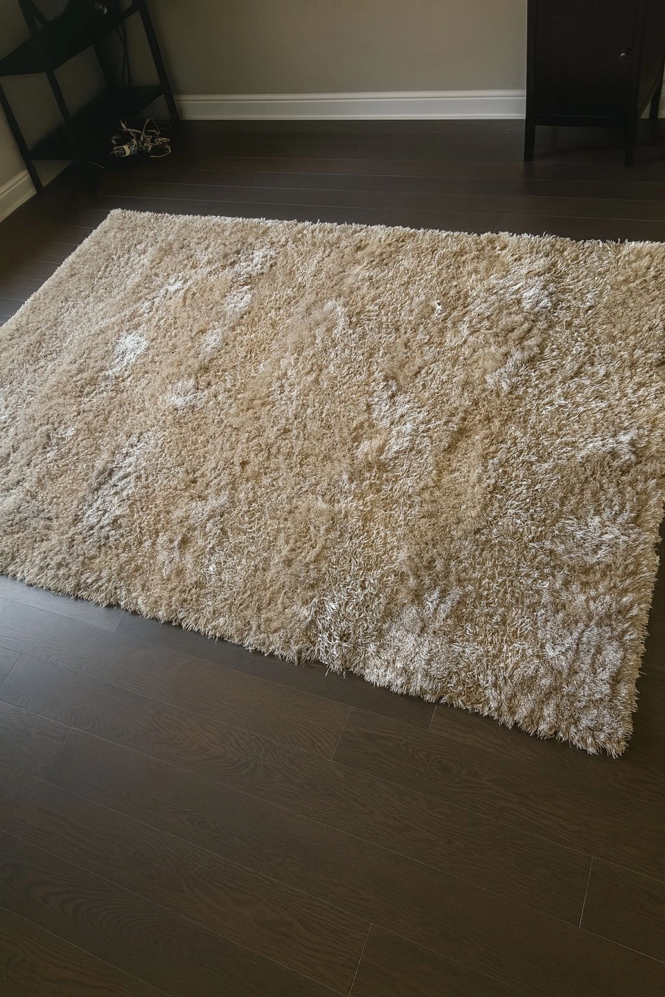 Sphinx Fusion Shag Rug – 5x8 ft, Champagne Beige Luxurious and cozy shag rug by Oriental Weavers, hand-tufted with 100% polyester pile for a soft, plush feel underfoot. The champagne beige color blends beautifully with any décor, making it perfect for living rooms, bedrooms, or lounges. Durable, easy to maintain, and in great condition.