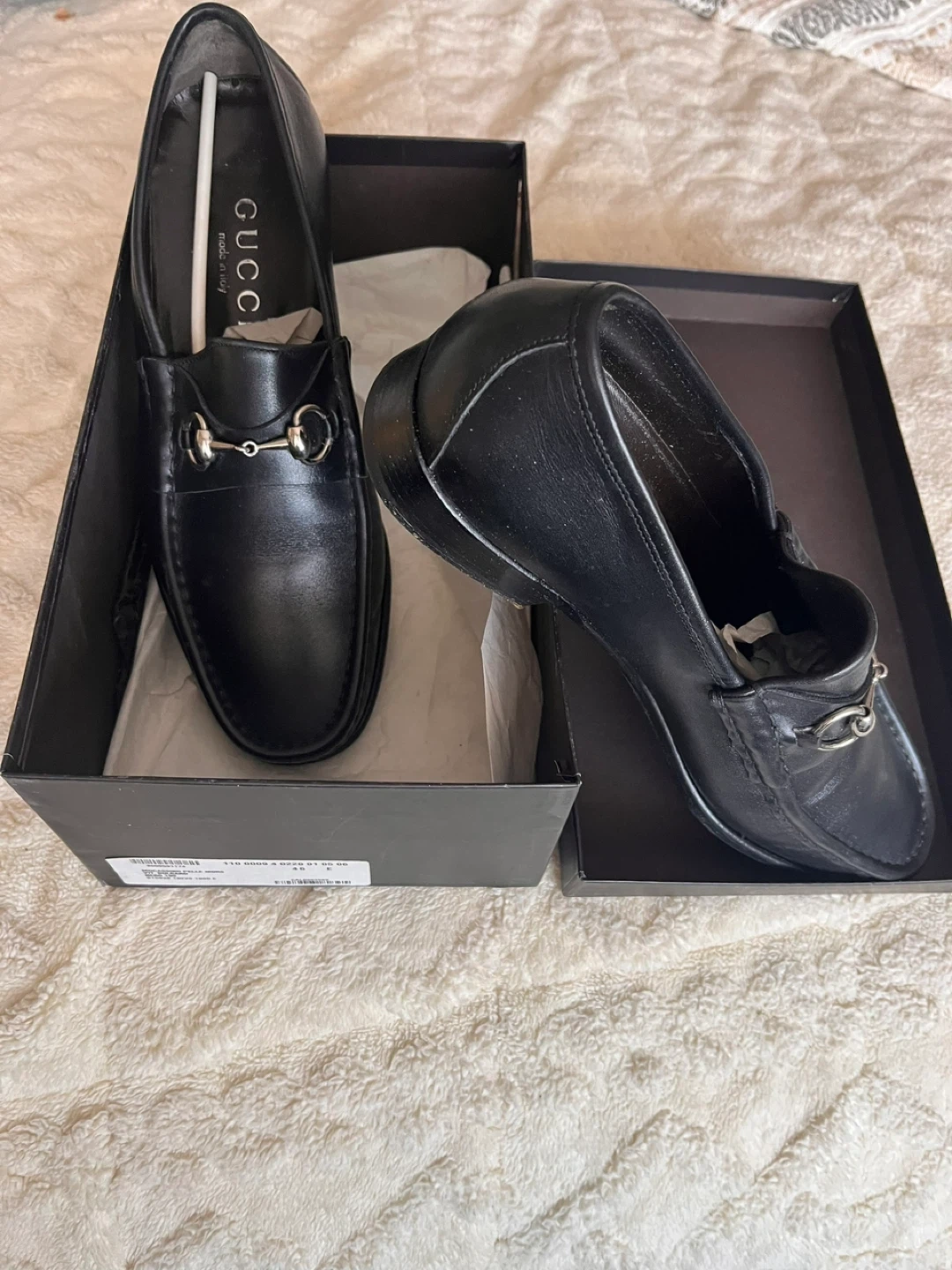 Authentic Gucci loafers crafted from black leather. These feature the iconic horsebit detail. Includes original box. Made in Italy.
