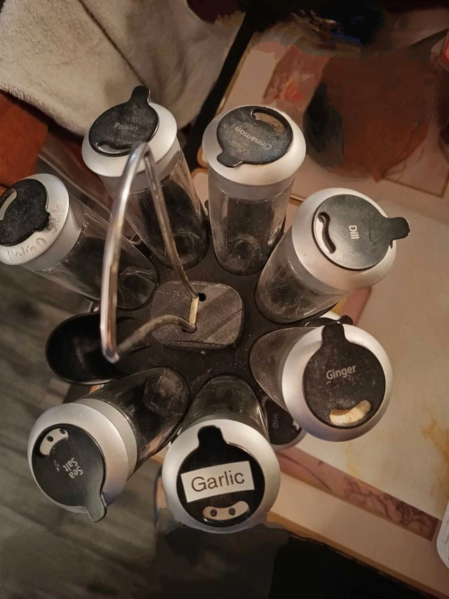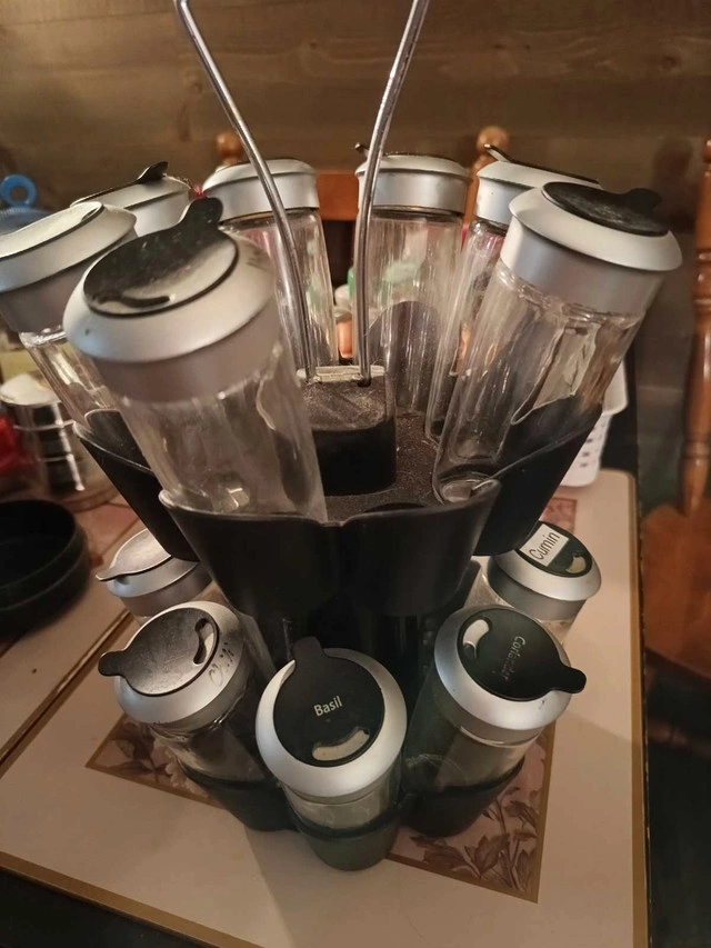 1016 piece spice Rack. 1 bottle missing. Asking $10 Pickup only