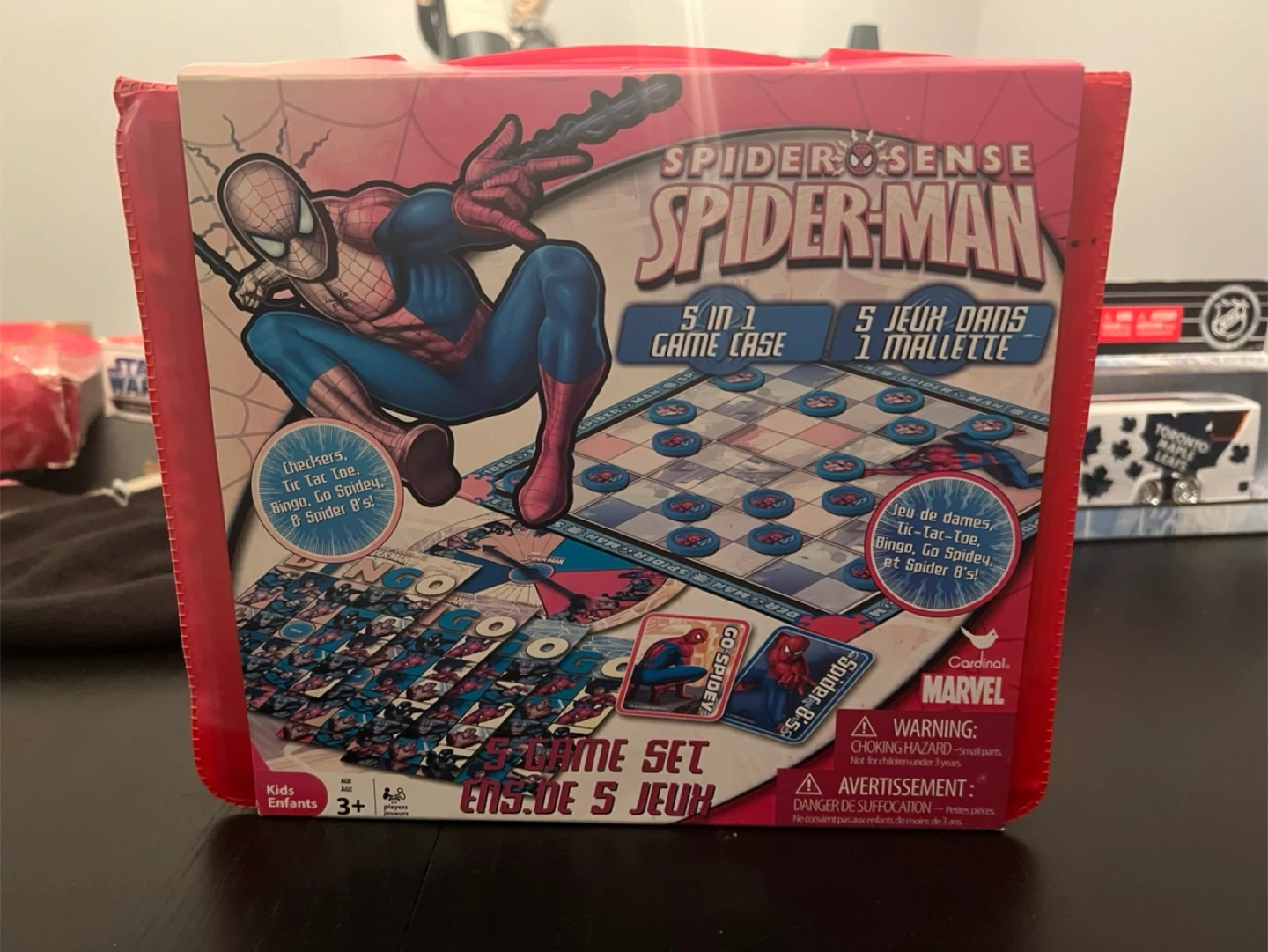 Selling a Spider-Sense Spider-Man 5-in-1 Game Case! It's a fun game set for kids aged 3+.