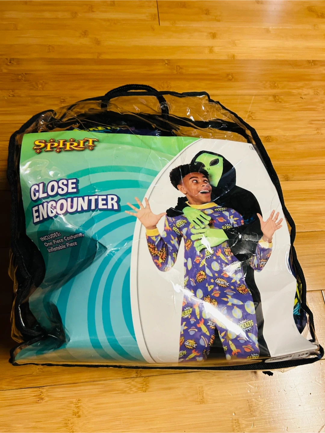 10Get ready for Halloween with this fun costume! It's a Spirit Halloween Close Encounter costume for children. It's one size fits most and includes a one-piece costume and inflatable piece. Originally bought for $64.99