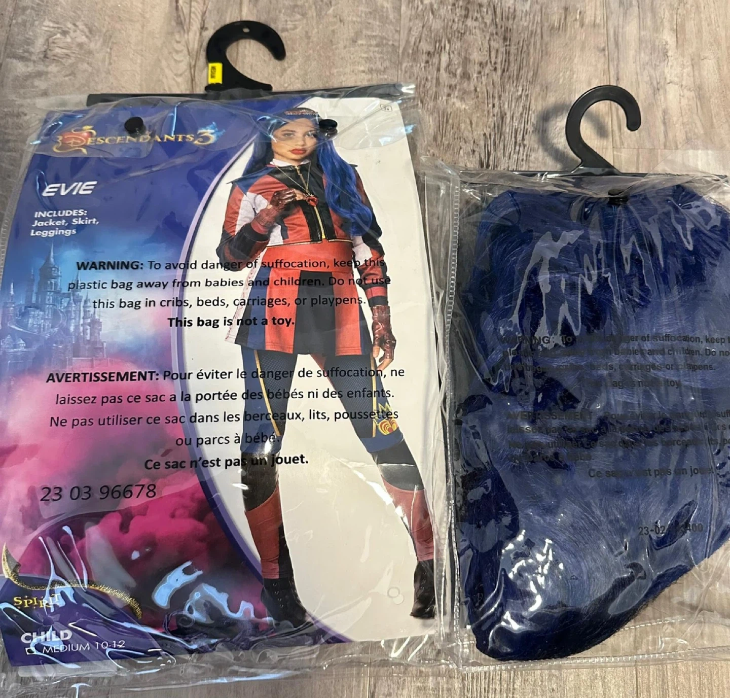 10Selling a variety of Spirit Halloween costumes, all in their original packaging! Available costumes include: - Big Frank (Adult, One Size Fits Most) - Includes jacket with attached shirt, pants, character mask, inflatable shoulder component, socks, hands, bow tie - Pennywise (Adult, X-Small 0-2) - Includes dress, collar, cuffs, thigh highs - Princess Dark (Adult, Medium 6-10) - Includes sleek zip front jumpsuit with vamp collar and attached skirt - Descendants 3 Evie (Child, Medium 10-12) - Includes jacket, skirt, leggings - Batman (Child, Small 4-6) - Includes muscle chest jumpsuit with body tops, headpiece with cape, belt