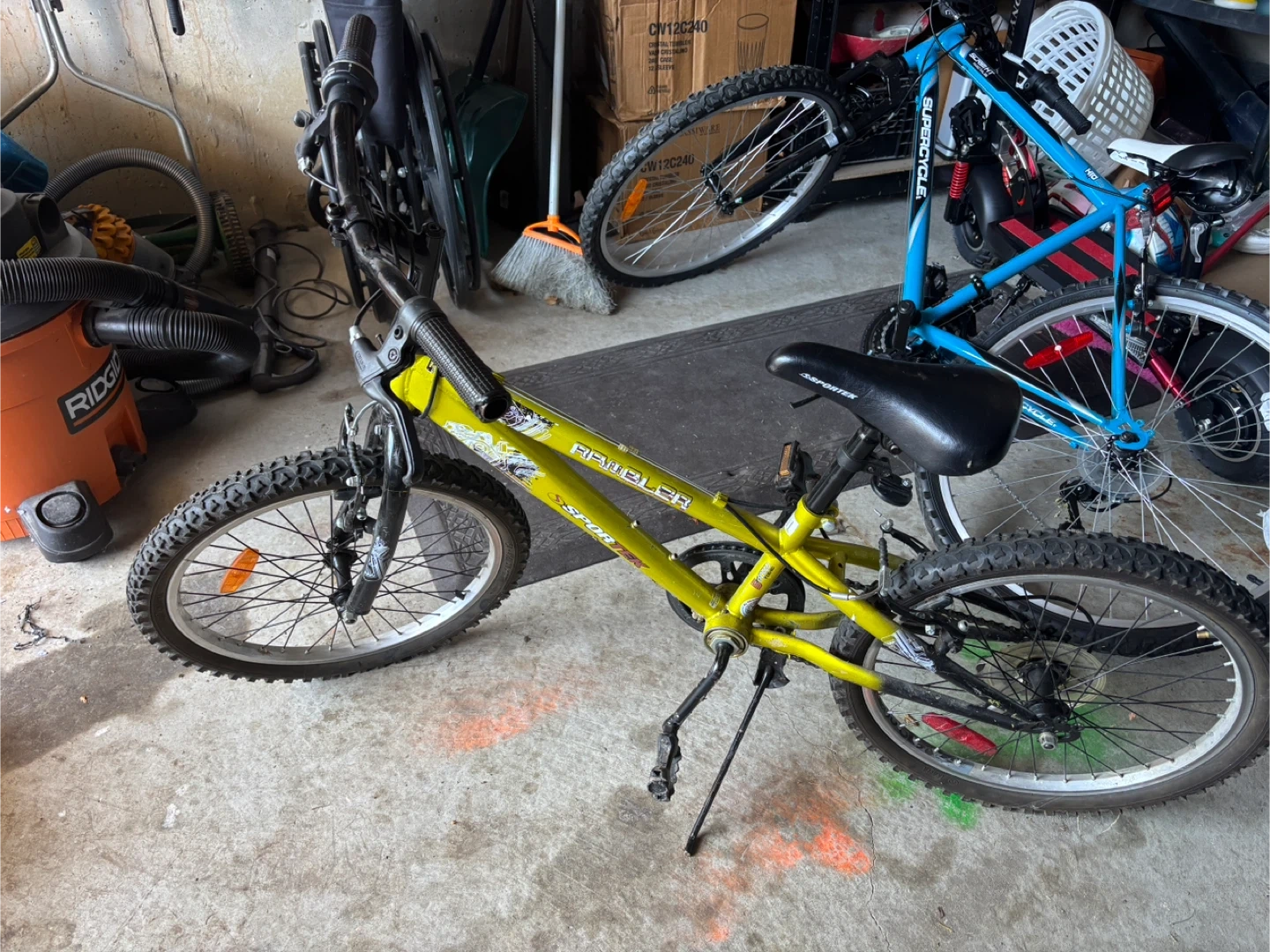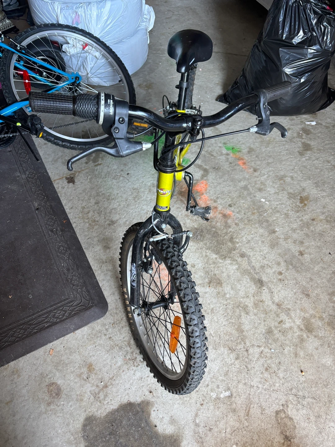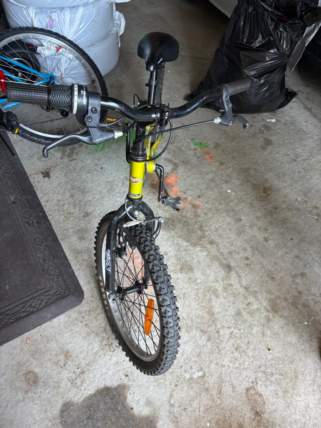 Selling a Sportek Rambler kids bike in yellow! It's a great bike for kids who are learning to ride or are ready for some off-road adventures. It has some wear and tear, but is still in good working condition.