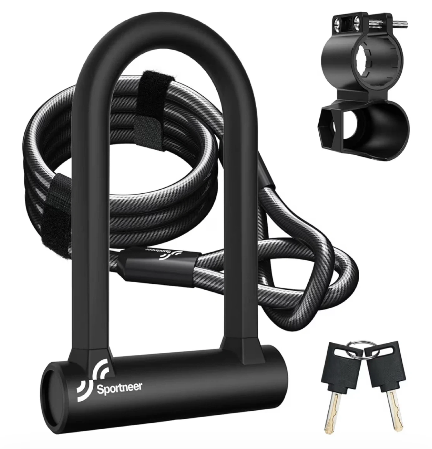 5Sportneer Bike Lock: 17mm Heavy Duty Bike U Lock - High-Security Anti-Theft with 12mm x1.5m Steel Cable, 8''x5'' Compact Design, Includes Mounting Bracket for Mountain/Road/Folding/Electric Bikes