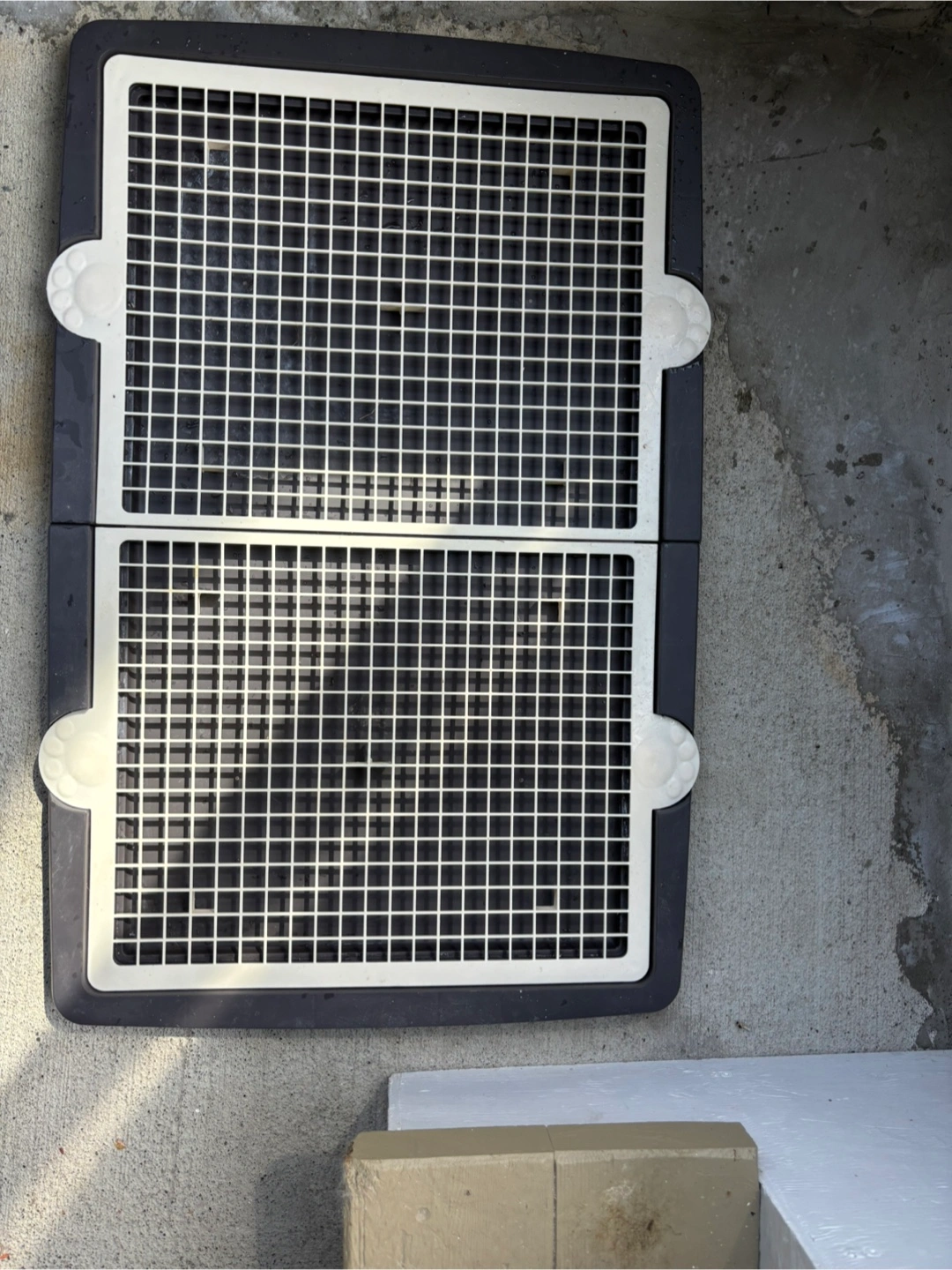 Selling a Spotty Indoor Potty Pad in excellent condition! It's perfect for house training your pet puppy. The three-layer system makes clean up effortless. The mat sits on top of the plastic insert that locks in and allows liquid to drain into the durable collection tray, making it a hassle-free process for your pets to relieve themselves indoors You only have to buy the grass piece and peepads for underneath. Both replacements can be bought separately at pet stores .