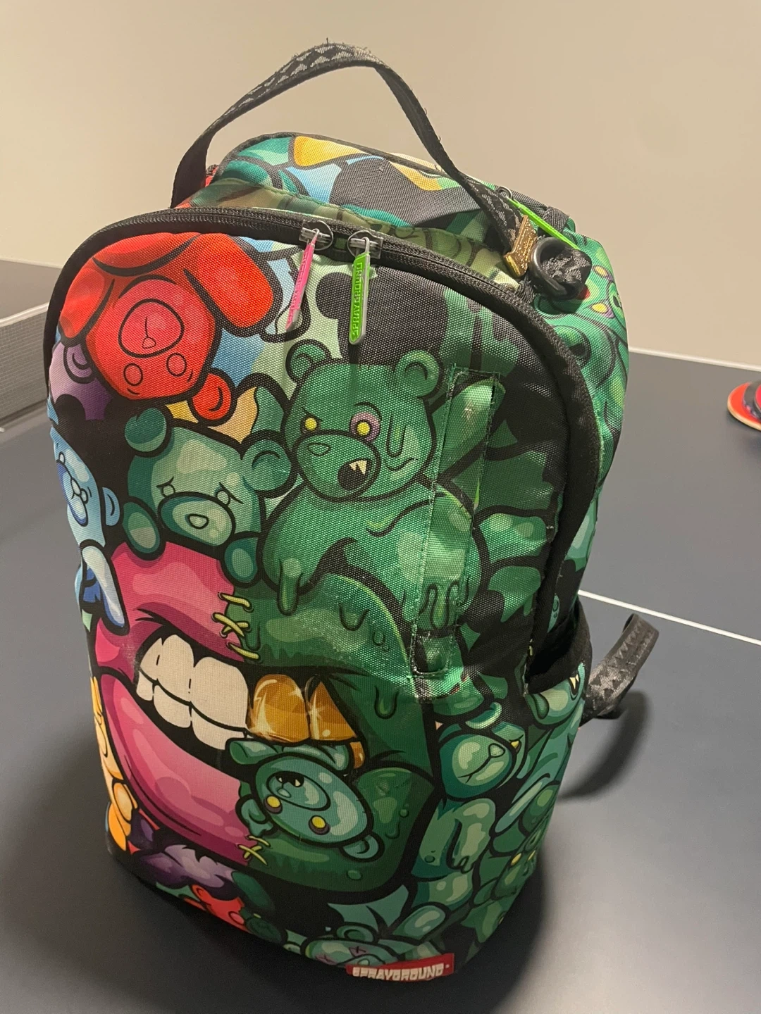 10Check out this awesome Sprayground backpack! It features a unique and colourful design with zombie teddy bears and other fun graphics. Perfect for school, travel, or just showing off your style