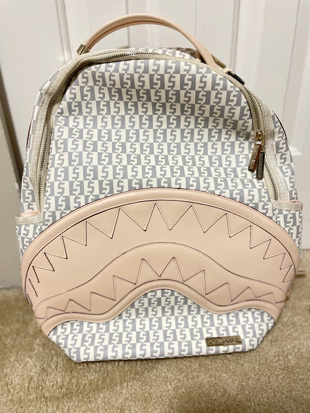60Here's a stylish Sprayground backpack! It features a unique pattern ,design and has a laptop compartment perfect for adding some flair to your everyday look. It's in great condition and ready for a new home