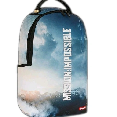 60SPRAYGROUND MISSION IMPOSSIBLE ON ANOTHER LEVEL BACKPACK B7051 NEW IN BAG WITH TAGS PRODUCT DETAILS 'MISSION IMPOSSIBLE' high definition 3D logo printed on front panel. Exterior Dimensions: 18" x 6" x 11.5" • Front zipper pocket • Side pockets • Zippered Stash pocket • Separate velour sunglass compartment • Ergonomic mesh back padding • Adjustable Straps for custom sizing • Gold zippers with metal hardware • Metal "Sprayground Authentic" badge • Slide through back sleeve connects to carry-on luggage to free your hands