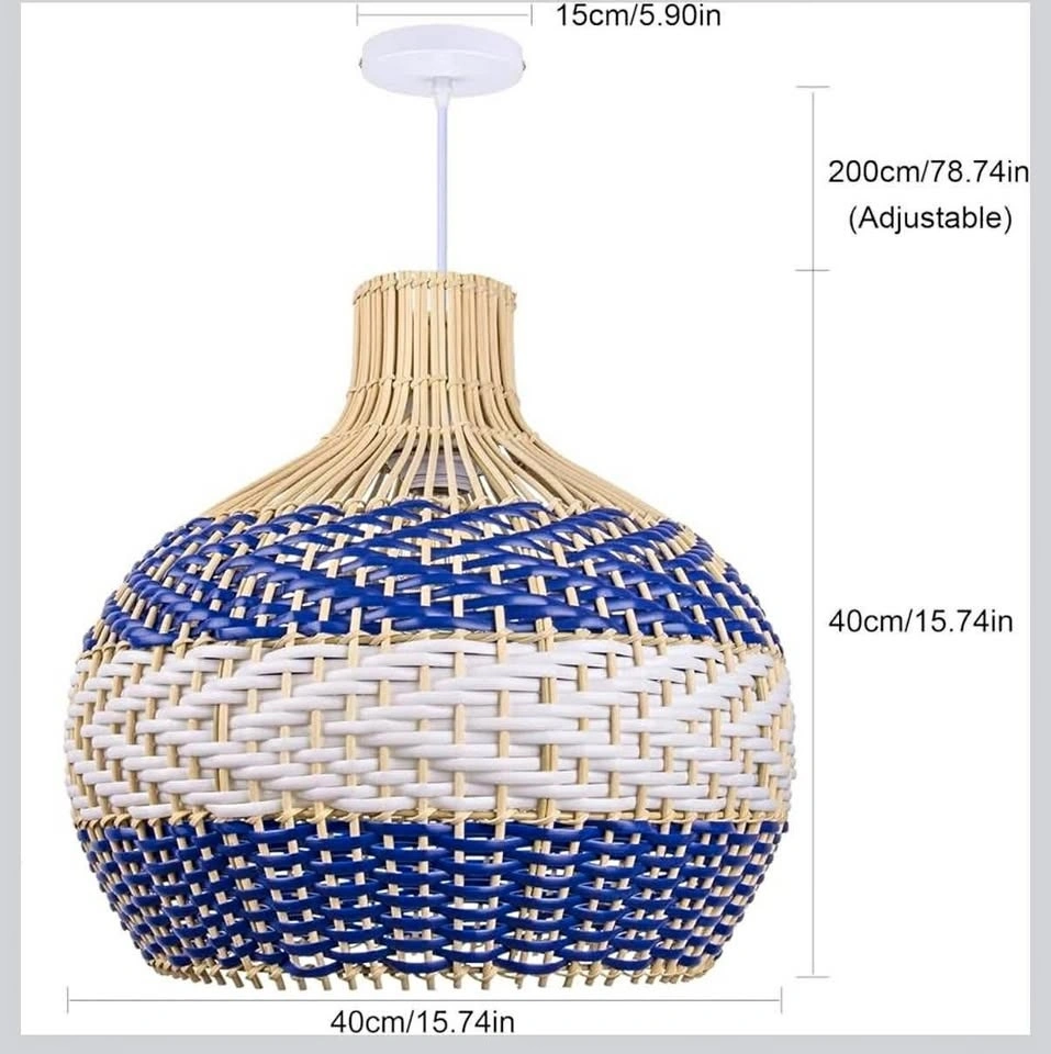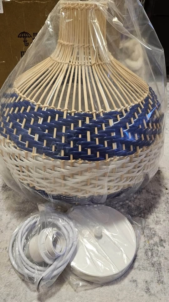 BRAND NEW Hand-Woven Rattan Chandelier, Rattan Pendant Light Fixtures Ceiling, Wicker Hanging Lamp for Dining Room Bedroom Kitchen Island Blue. High-quality, durable materials with a unique, colorful design. Compatible with E26/E27 bulbs (up to 60W): LED, CFL, incandescent, or halogen (bulb not included). Adjustable hanging height up to 78.74 inches. Easy and quick installation with included hardware and instructions. Stylish rattan design ideal for home décor and island lighting. Retail price: $456 (before tax). Selling price: $85. Pick up: Salem and Taunton.