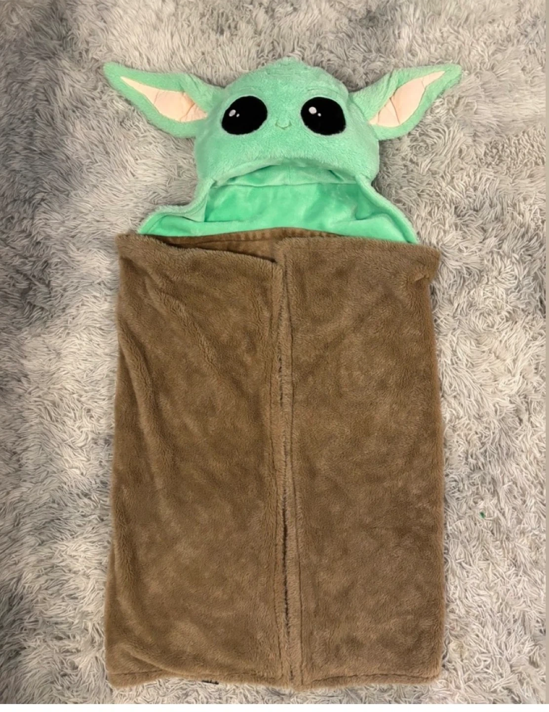 Super soft and cozy hooded blanket featuring The Child from Star Wars. It's made of plush material perfect for keeping warm. This blanket is a fun way to snuggle up for Star Wars fans of all ages!