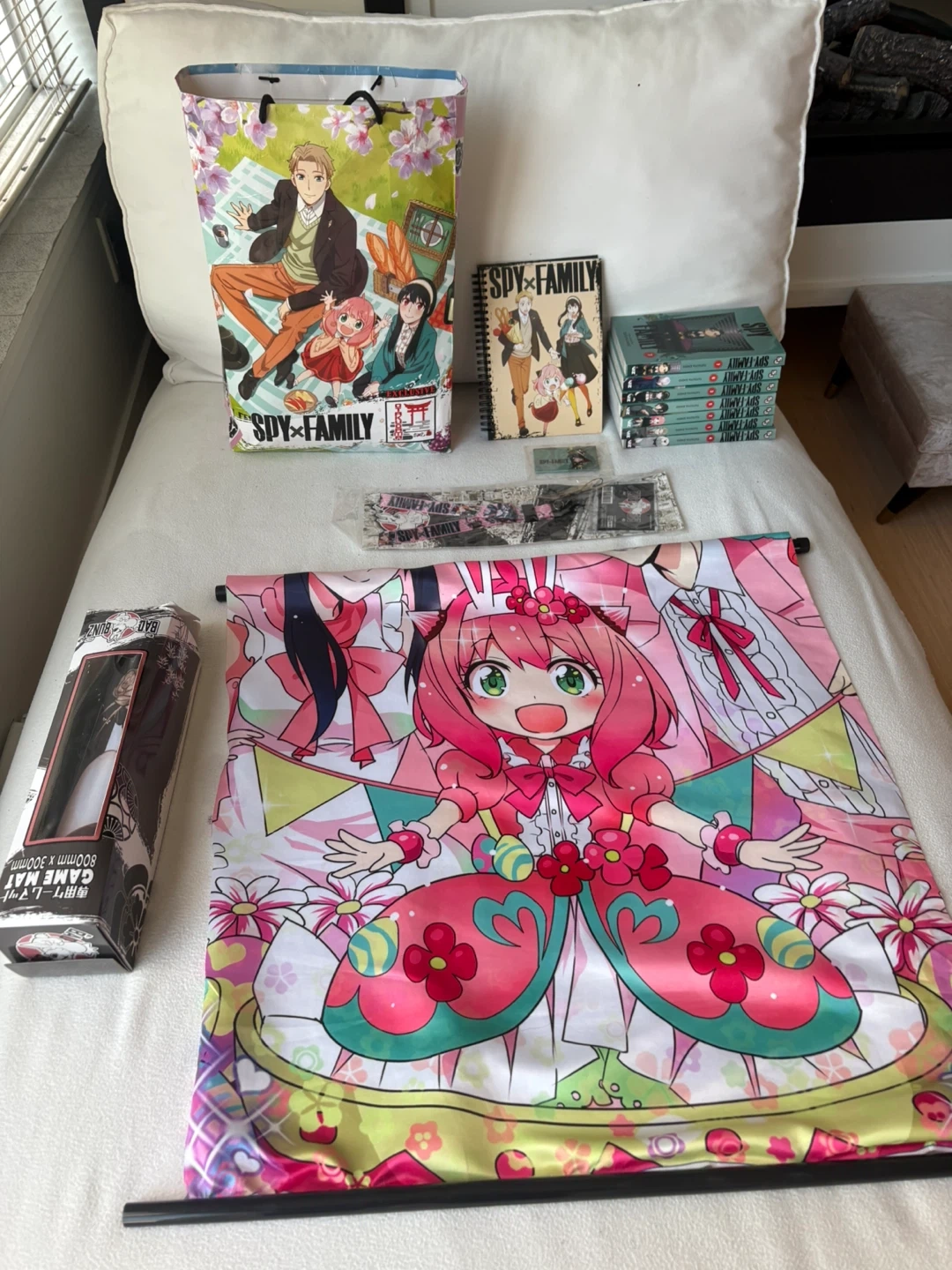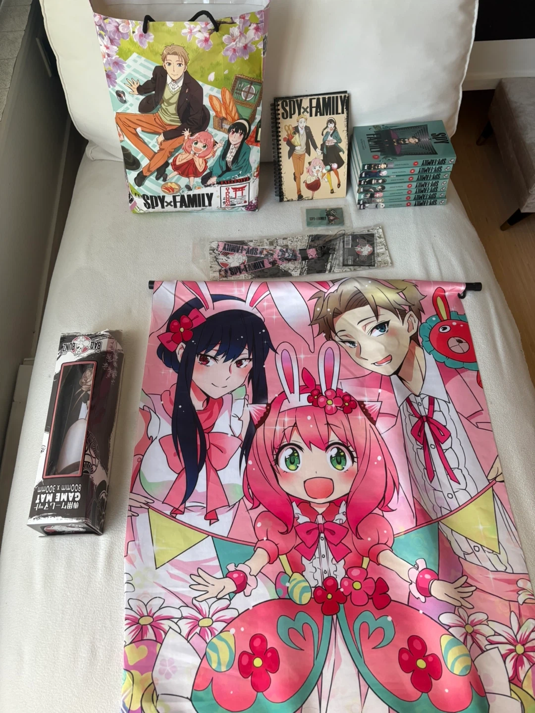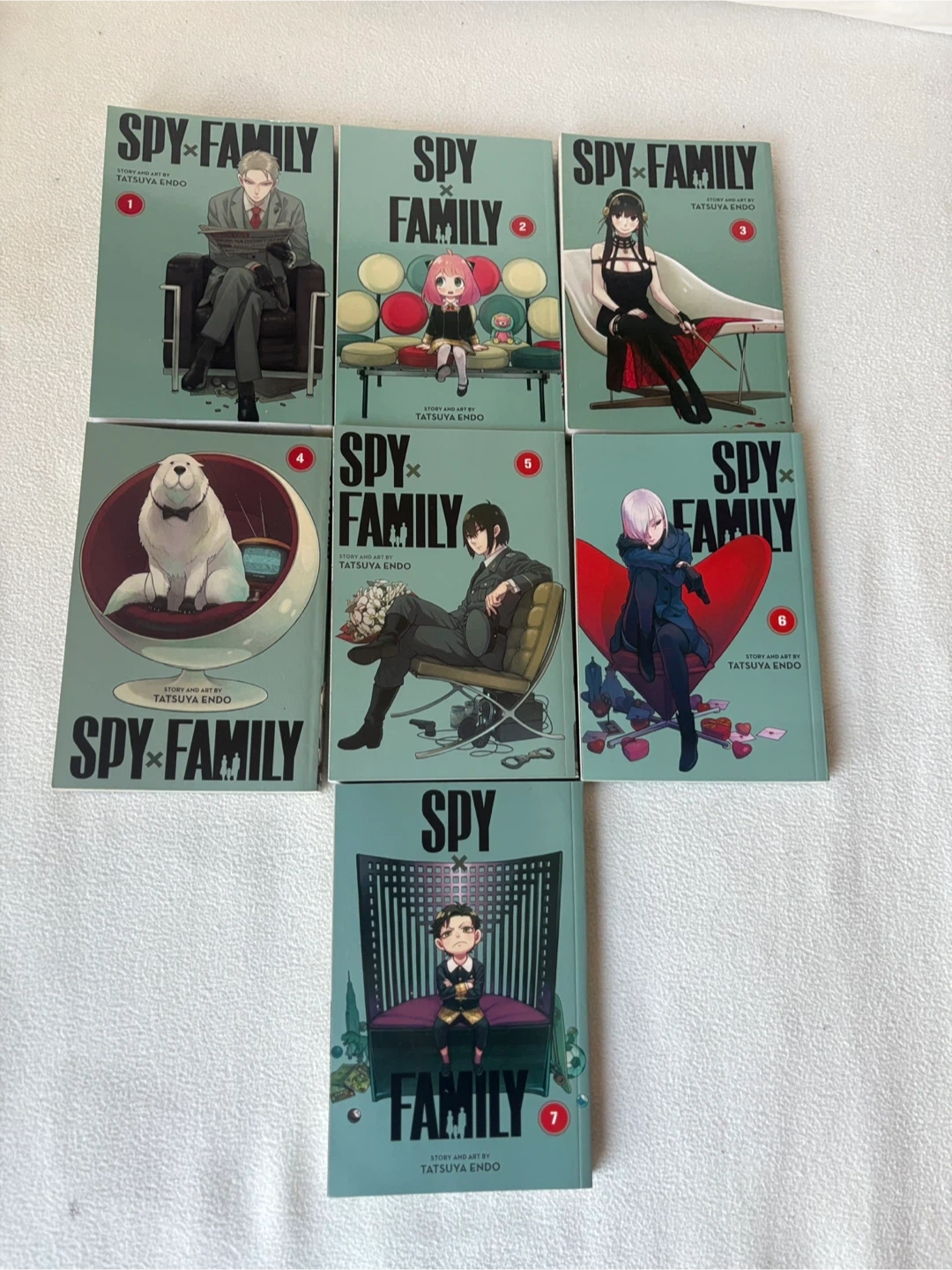 59Selling a complete set of Spy x Family manga (volumes 1-7) along with some fun merchandise! Includes a lanyard, notebook, game mat, and other goodies. Perfect for any fan of the series!